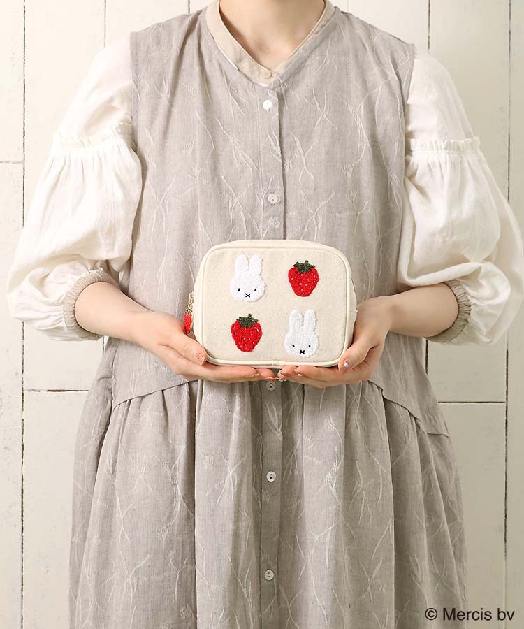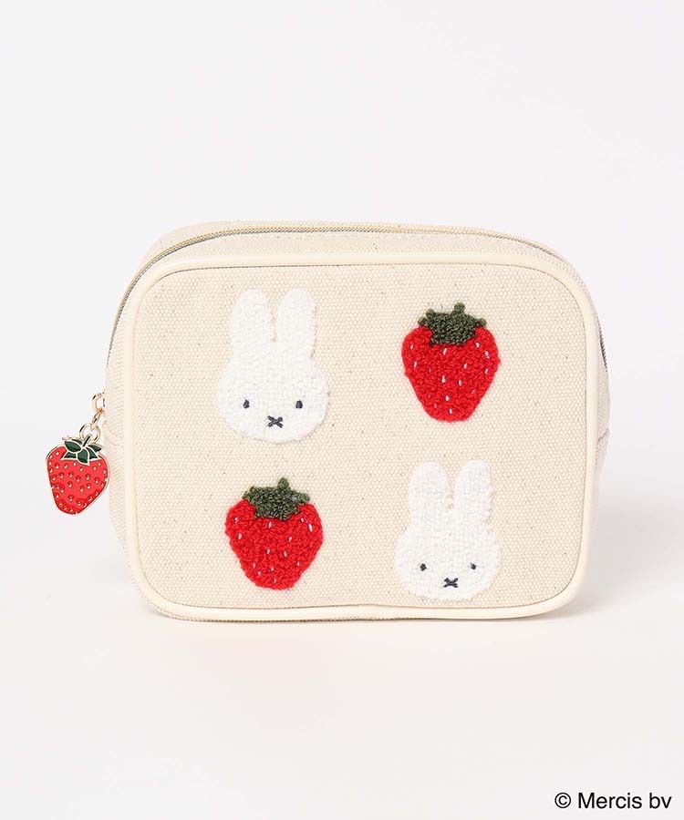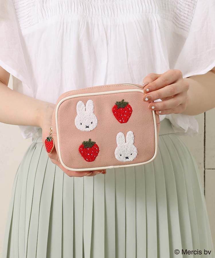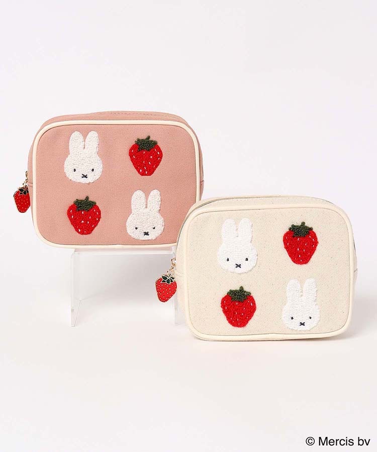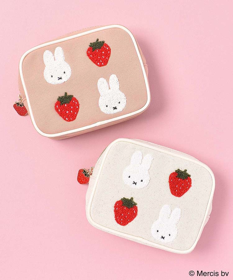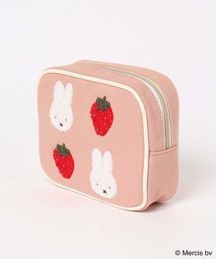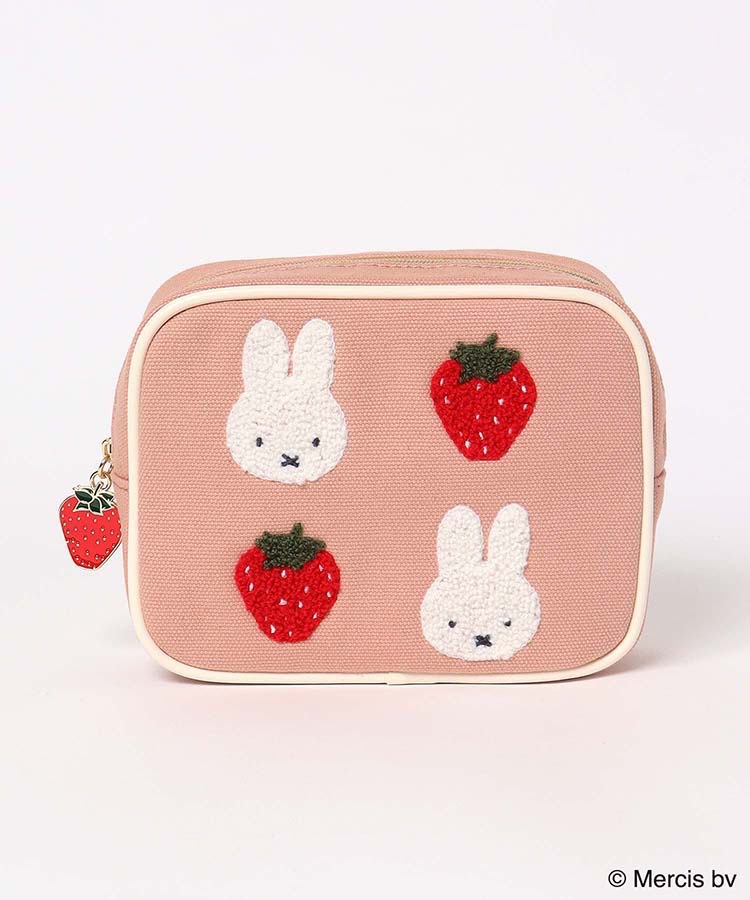 재고 있음 일본 미피 딸기 만화 귀여운 핑크 사각형 메이크업 보관 가방 휴대용 자수 패션 립스틱 가방스토어 가기