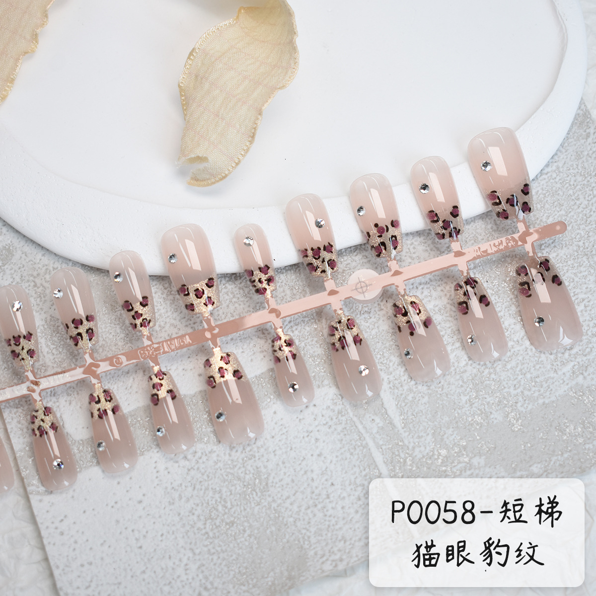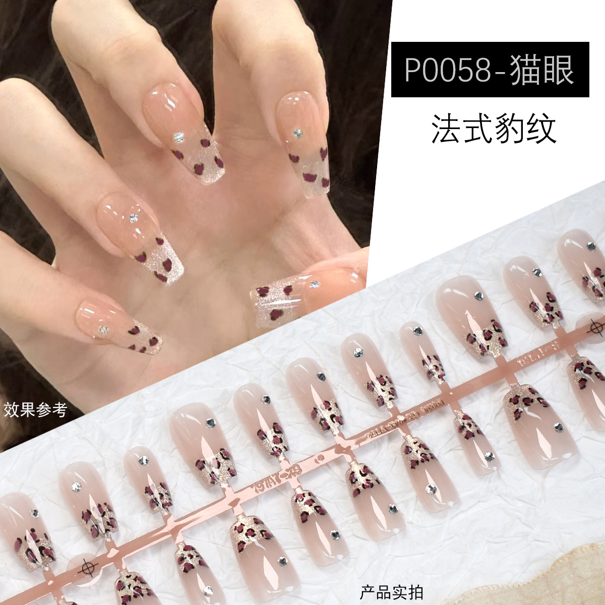프랑스 고양이 눈 레오파드 무늬 손톱 조각 크리스탈 다이아몬드 짧은 사다리 30 조각 고급 감각 틈새 인터넷 연예인 우아한 뜨거운 소녀 스타일