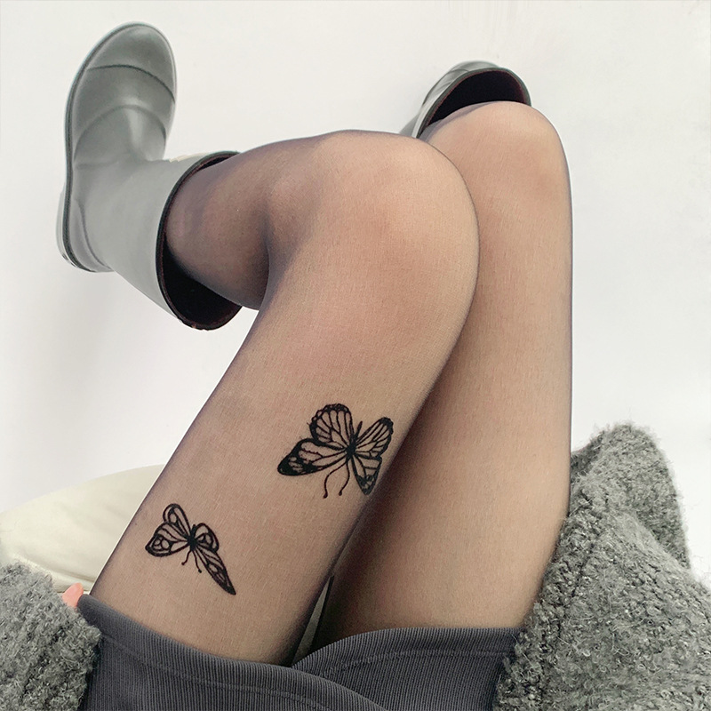 야간 강의실 검은 활 실크 스타킹 봄과 가을 여성의 섹시한 검은 실크 팬티 스타킹 귀여운 인쇄 로리타