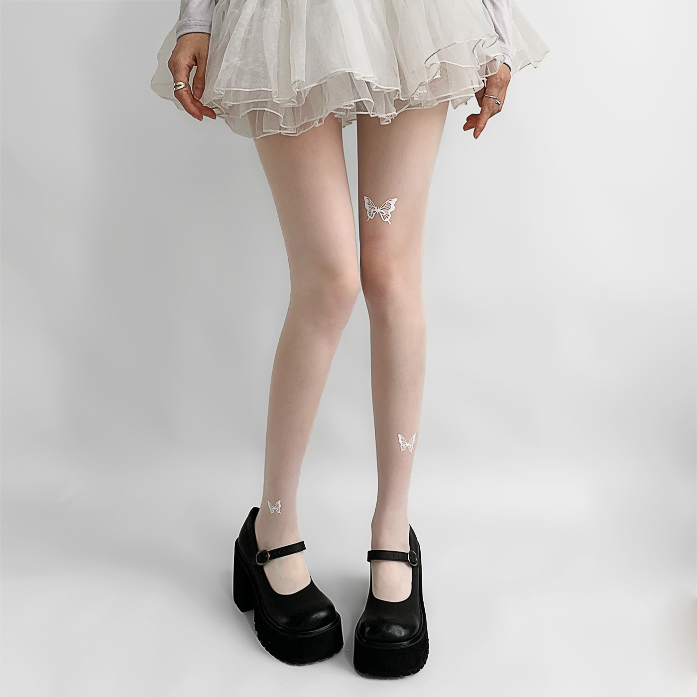 야간 강의실 검은 활 실크 스타킹 봄과 가을 여성의 섹시한 검은 실크 팬티 스타킹 귀여운 인쇄 로리타스토어 가기