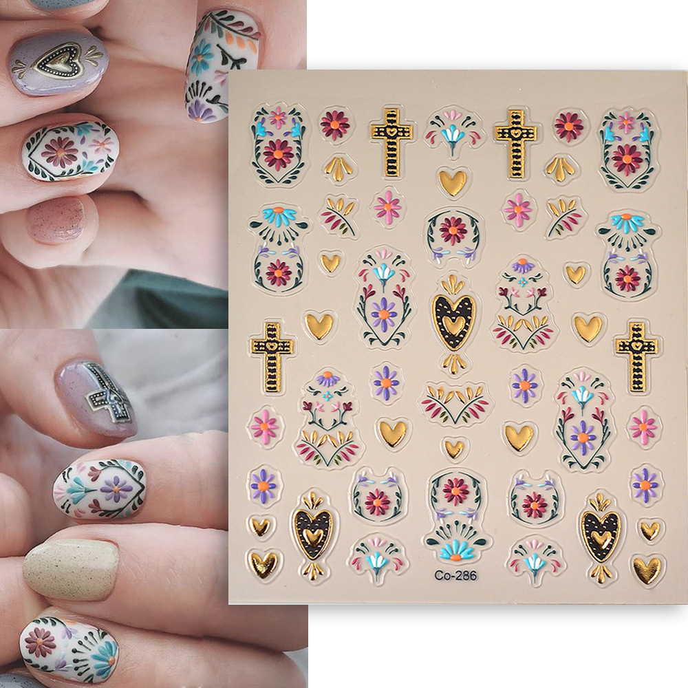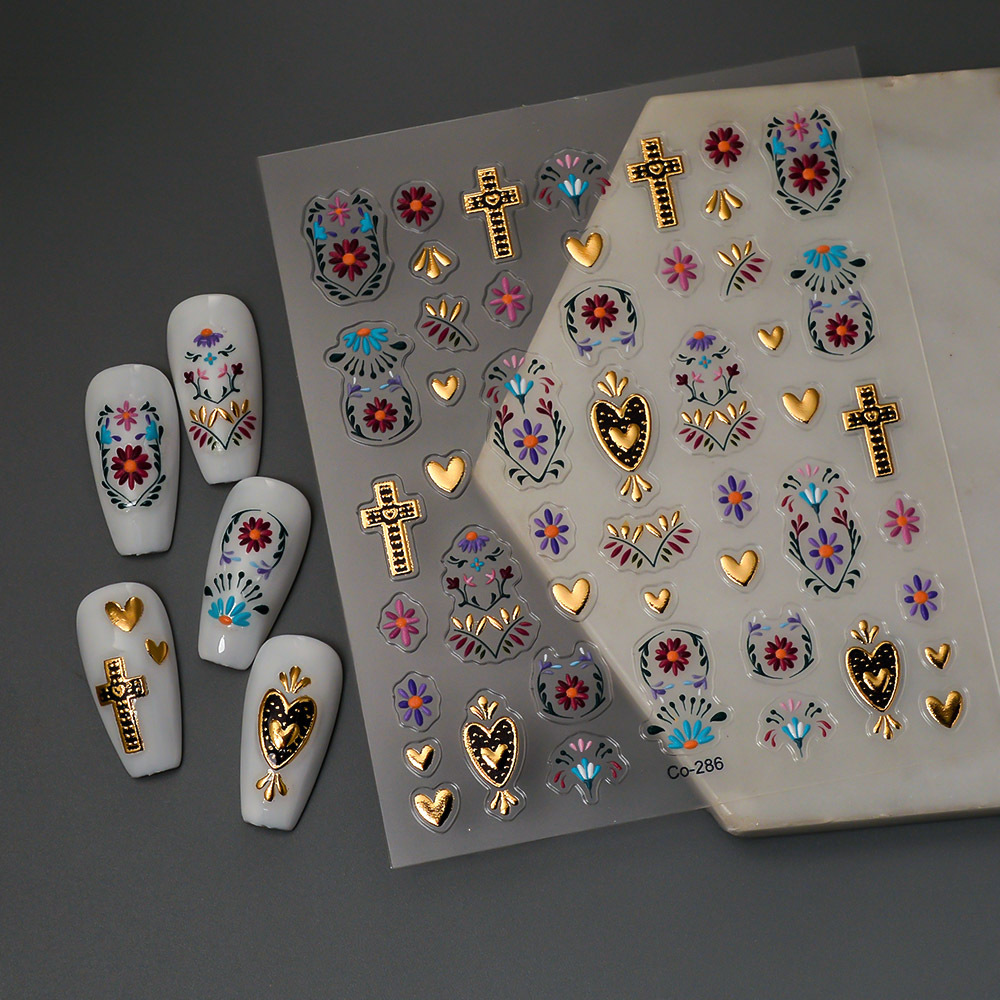 사이버 축하 네일 아트 5D 브론징 네일 장식 스티커 복고풍 꽃 사랑 그린 DIY 셀프 접착 올 매치 데칼