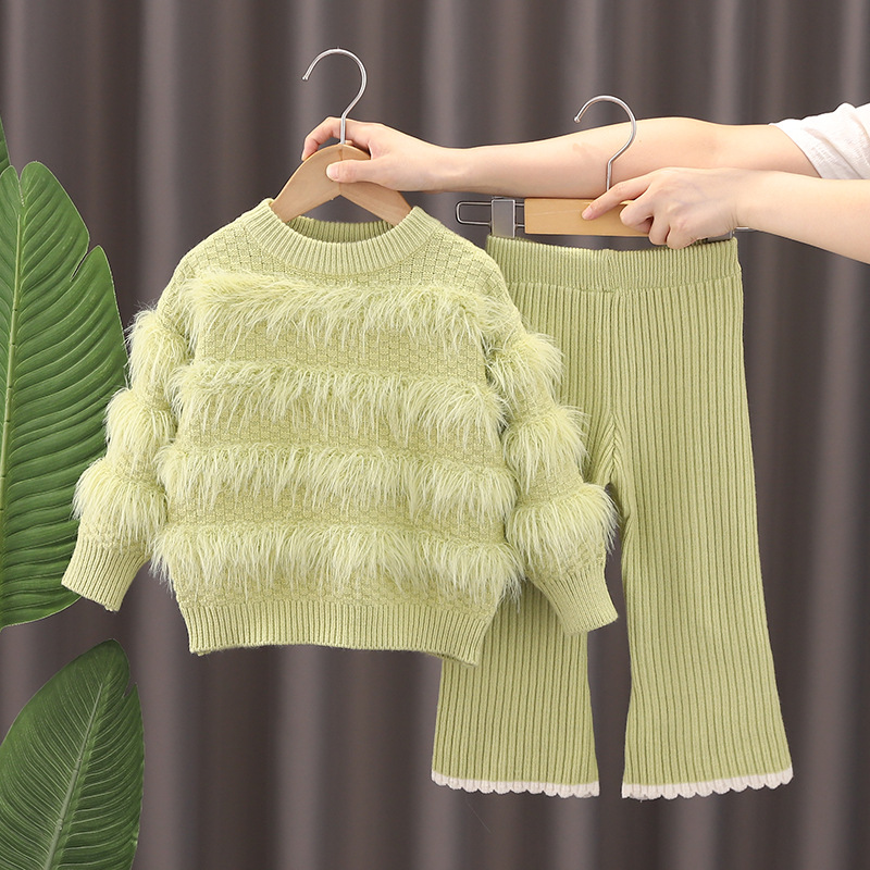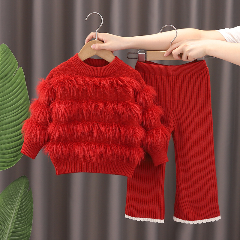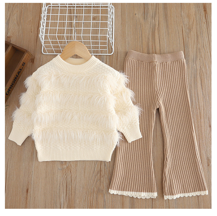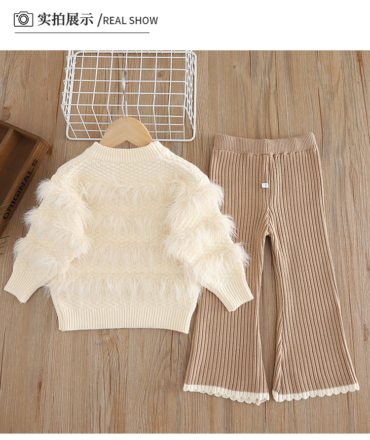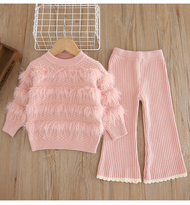 2024 가을과 겨울 새로운 폭발 마오 마오 니트 플레어 바지 투피스 소녀 스웨터 세트 긴 소매 풀오버 탑