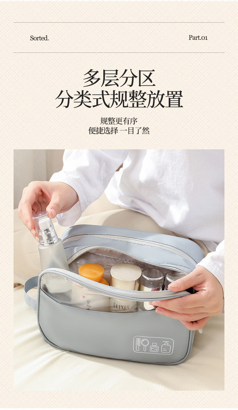 외출용 대형 후크 세면백, 건식 및 습식 분리, 여행 및 출장용 수납, 휴대용 화장품 가방, 여름용 대용량스토어 가기