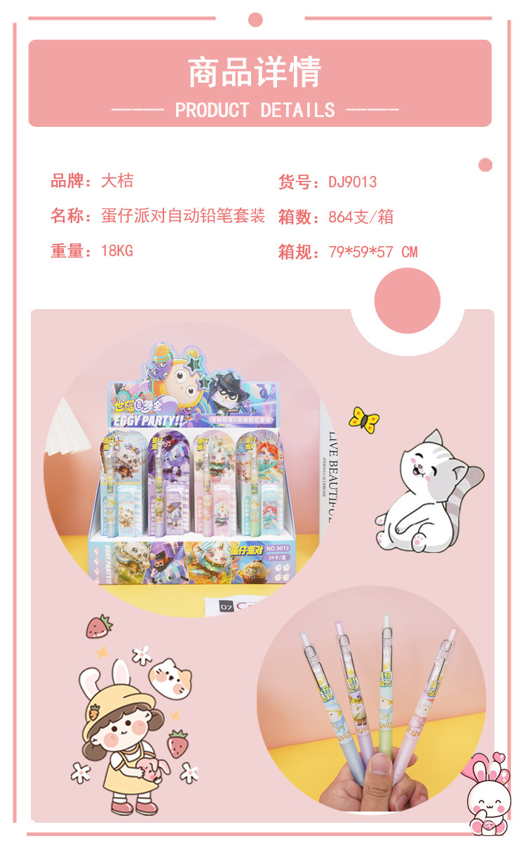 9013 달걀 파티 자동 연필 세트 리드와 0.5 게임 주변 귀여운 학생 용품 문구스토어 가기