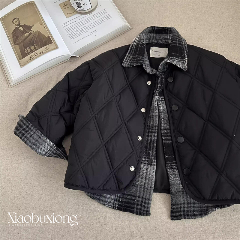 작은 천은면 패딩 재킷을 입은 소년들을 낳습니다. 새로운 어린이 서양식 가짜 투피스 퀼트 겨울 코트 소년 잘 생기는면 패딩 코트 조수