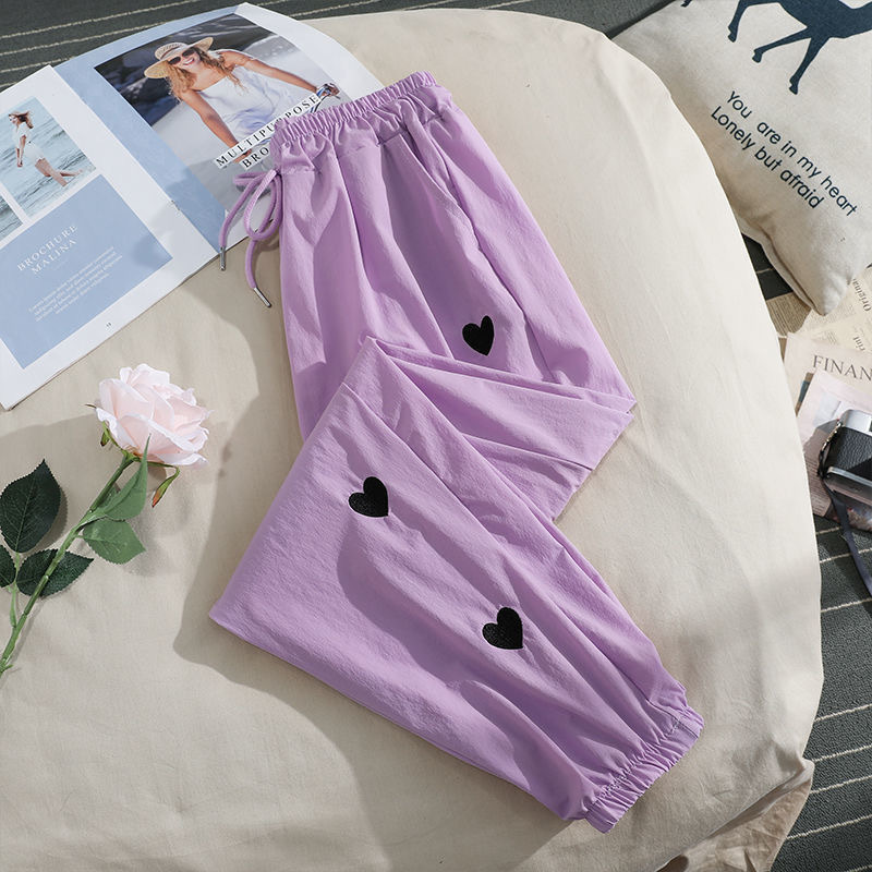 소녀 여름 바지 아이스 실크 빠른 건조 스포츠 캐주얼 바지 여름 2023 얇은 느슨한 느슨한 자른 모기 방지 바지스토어 가기