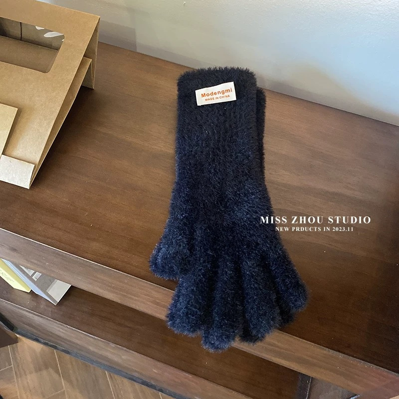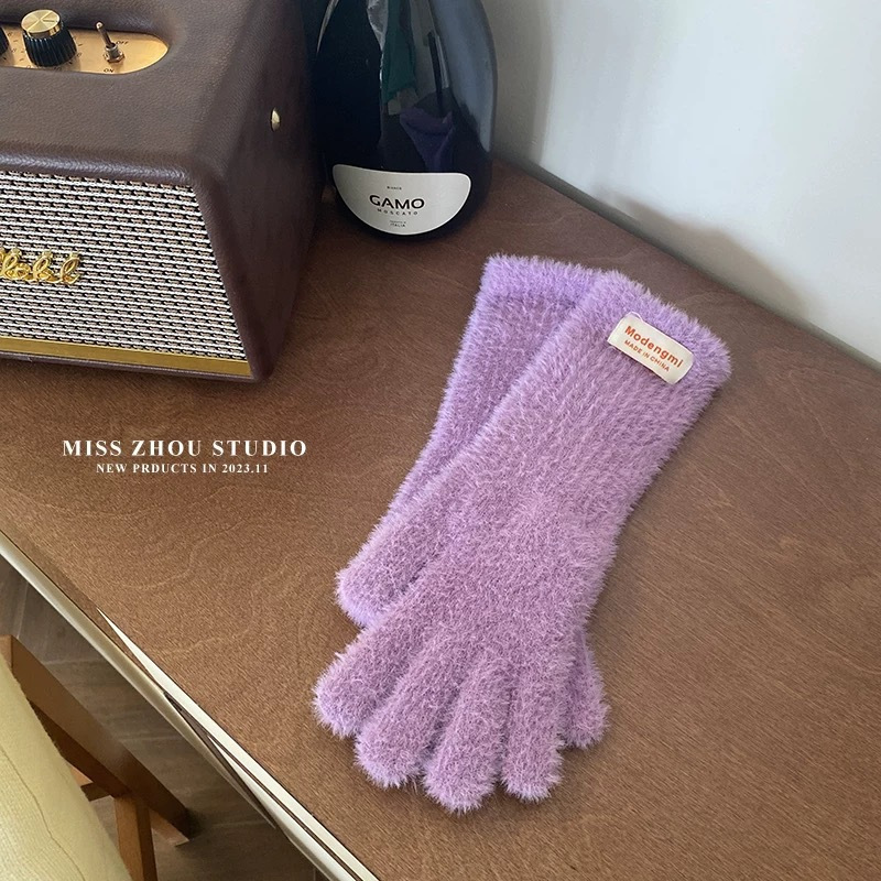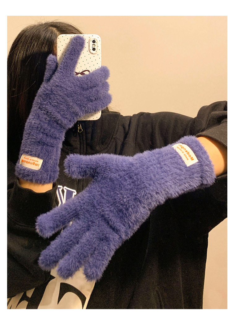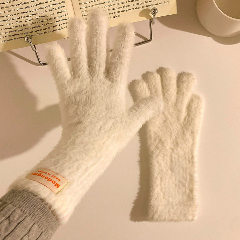 장갑 여자의 겨울 봉제 부드러운 Waxy Finger Ins 모든 경기 긴 두꺼운 따뜻한 학생 승마 여분의 손가락 터치 스크린