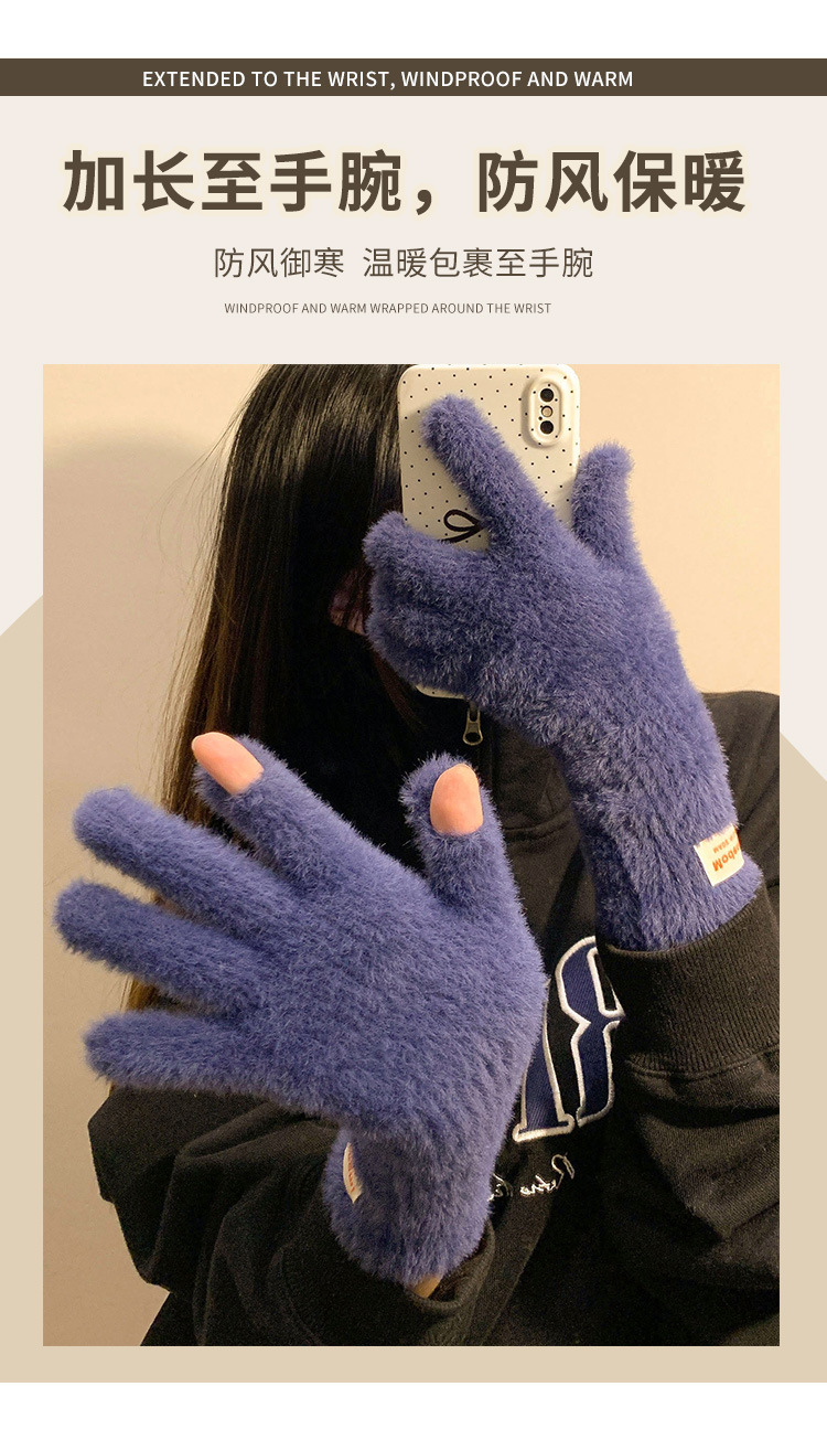 장갑 여자의 겨울 봉제 부드러운 Waxy Finger Ins 모든 경기 긴 두꺼운 따뜻한 학생 승마 여분의 손가락 터치 스크린스토어 가기