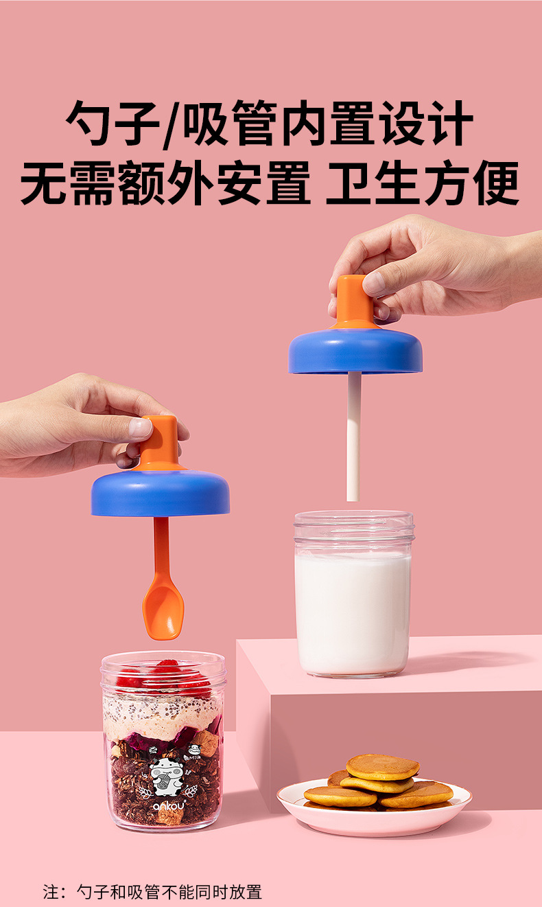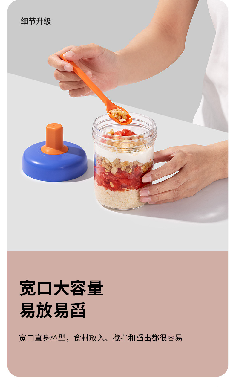 버클 하룻밤 오트밀 컵 휴대용 밀봉 조식 밀봉 사워 컵 뚜껑 숟가락 외부 우유 컵 밀크 쉐이크 오트밀스토어 가기