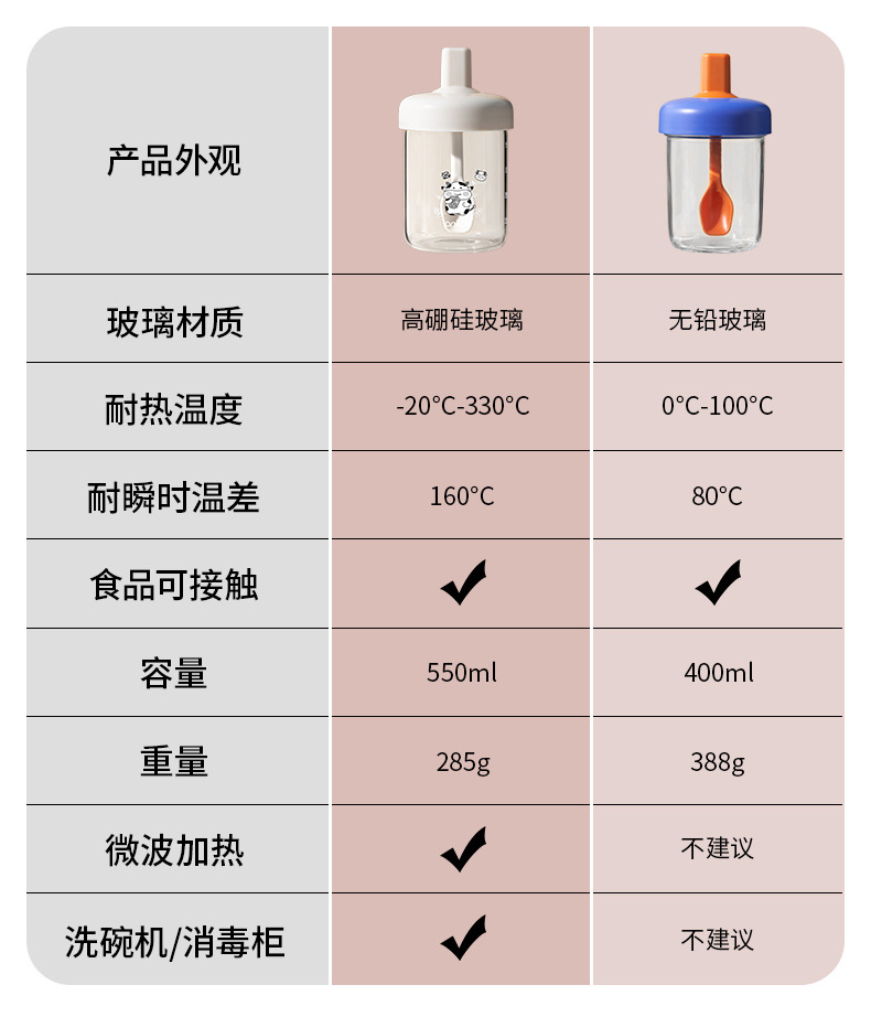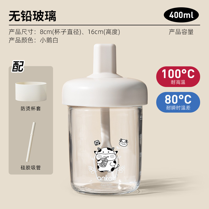 • 구스 화이트/내장 스푼/귀여운 소 화상 방지 컵 커버 + 빨대 - 용량 400ml