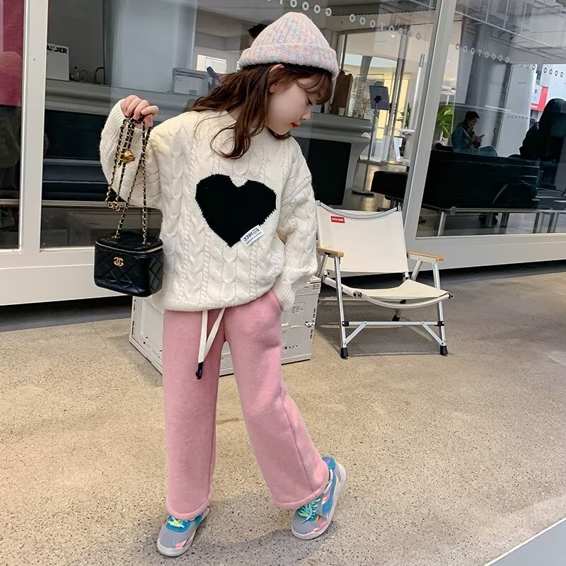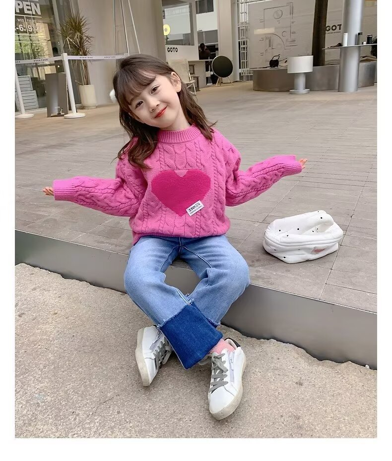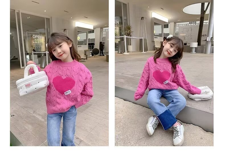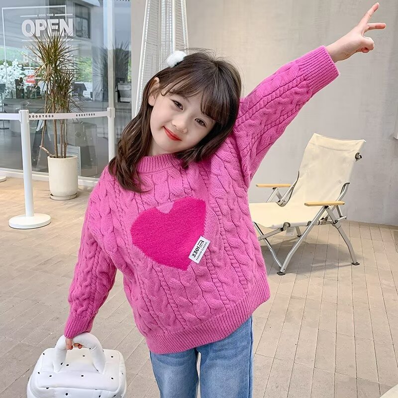 소녀 스웨터 봄과 가을 2024 새로운 가을 어린이 기지 셔츠 세련된 어린 소녀 니트 셔츠 중 큰 어린이 스웨터스토어 가기