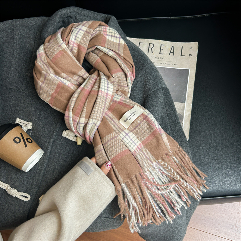 새로운 올 매치 간단한 가을과 겨울 여자 한국식 격자 무늬 캐시미어 스카프 커플 두꺼운 술 스카프 목도리