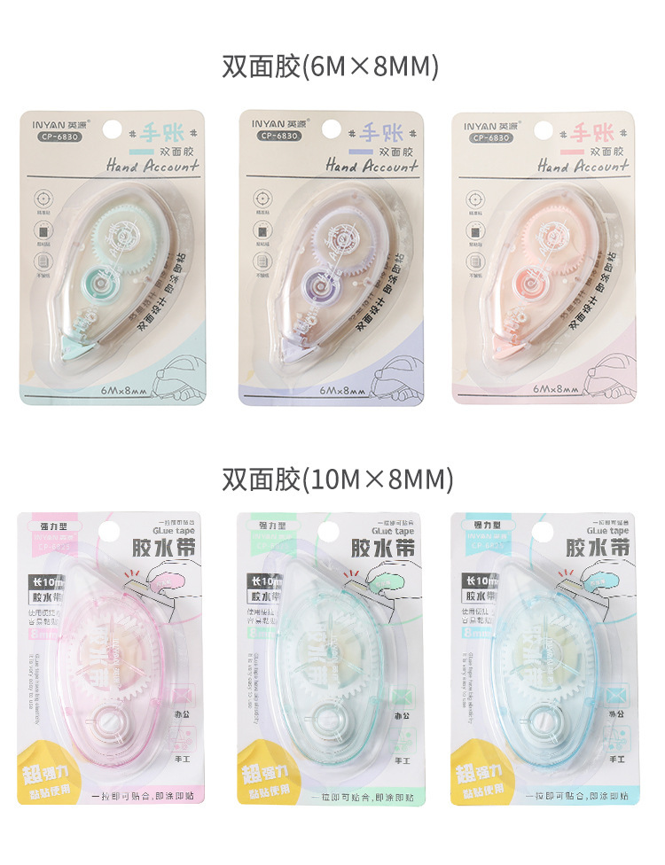 创意 新款 双面胶水带 卡通 莫兰迪 糖果色 彩色 小学生 diy 手工 手账