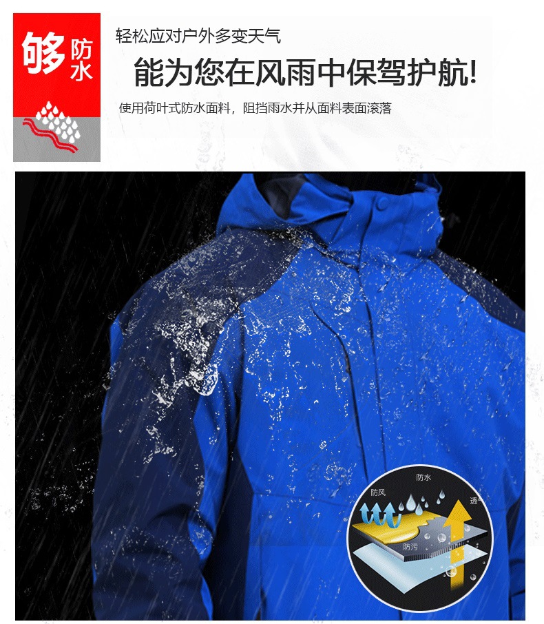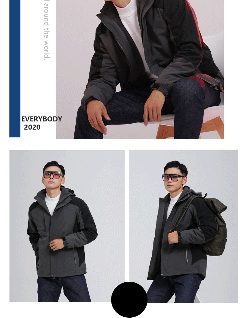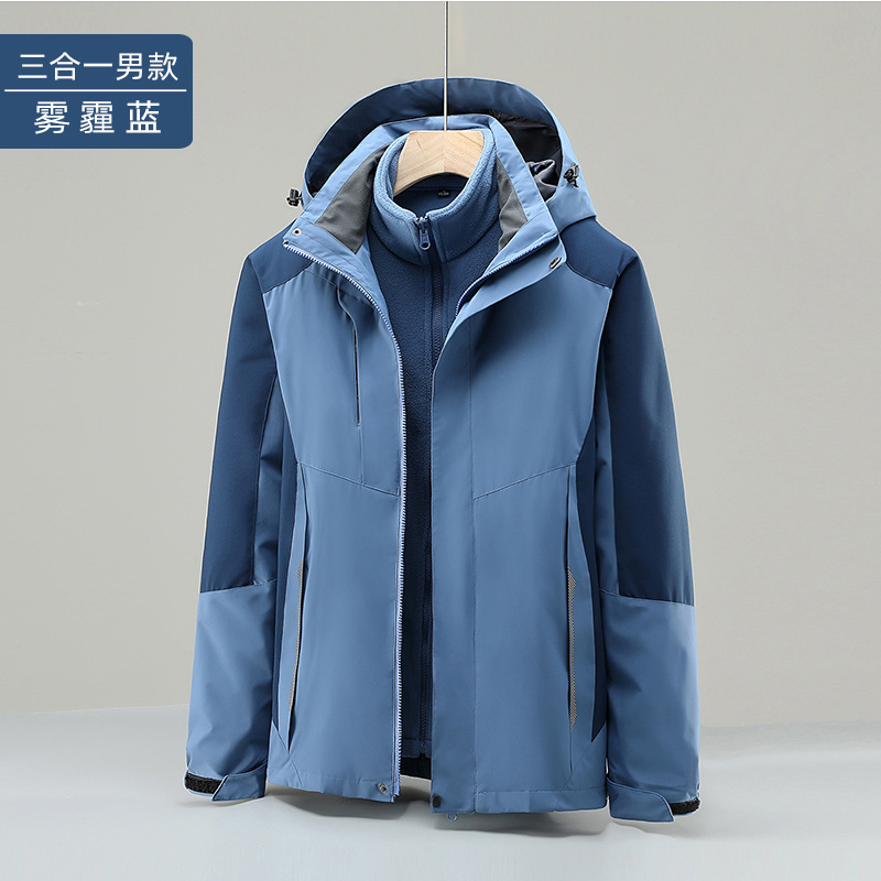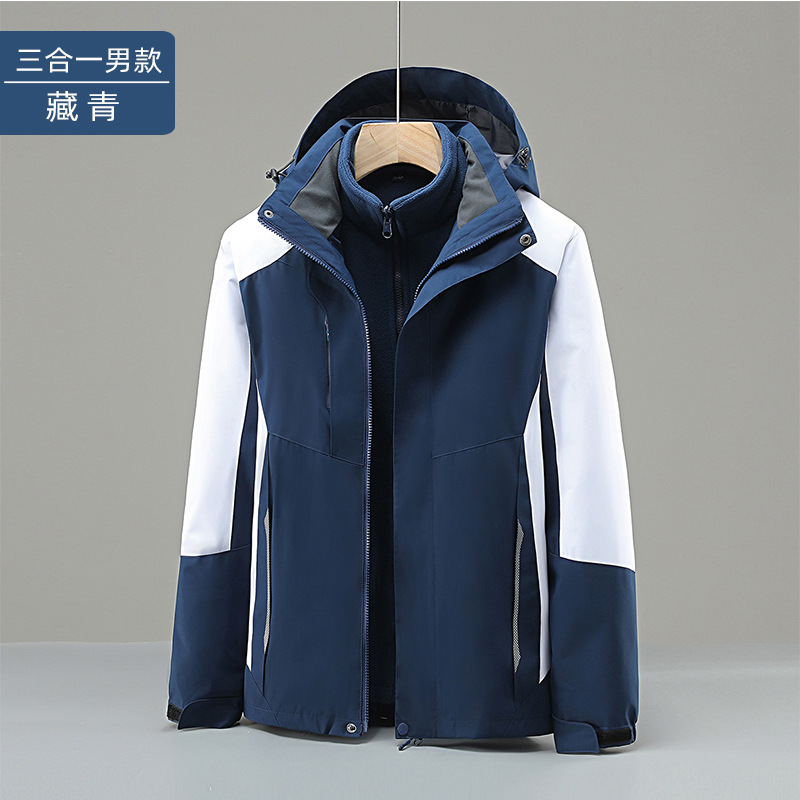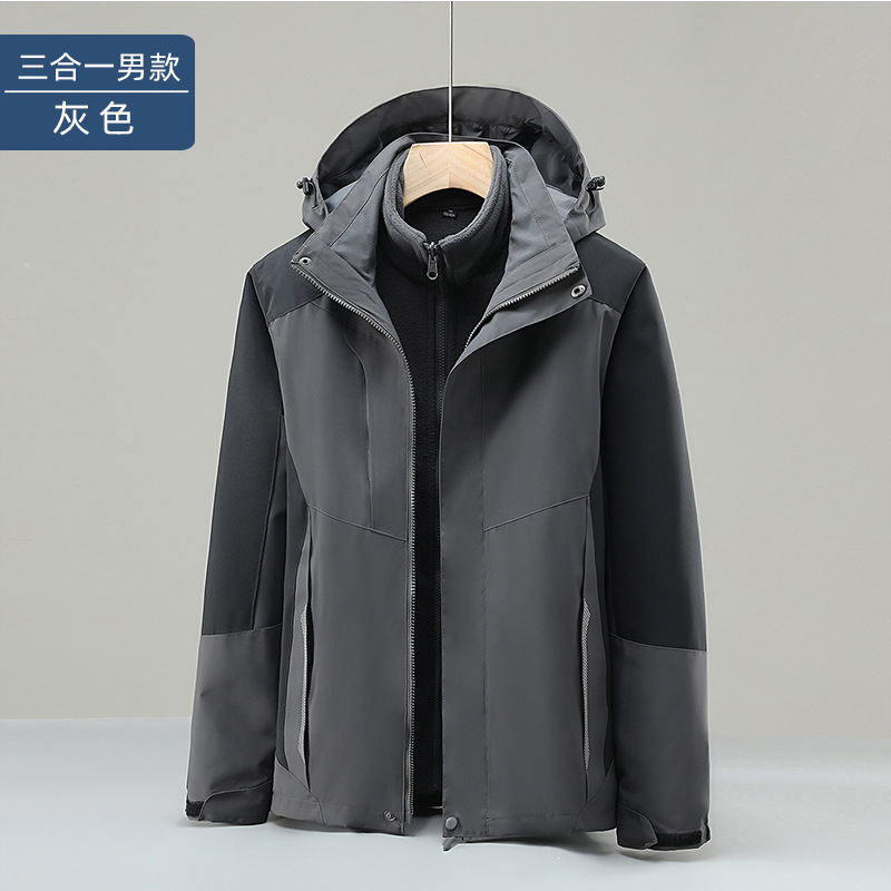 야외 충전 옷 작업복 인쇄 로고 남성과 여성의 3 대 1 분리 가능한 도구 기모 두꺼운 코트 겨울스토어 가기