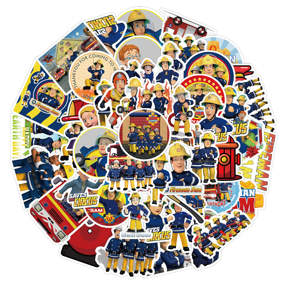 50 만화 소방관 샘 어린이 스티커 노트북 기타 워터 컵 문구 장식 수하물 스티커