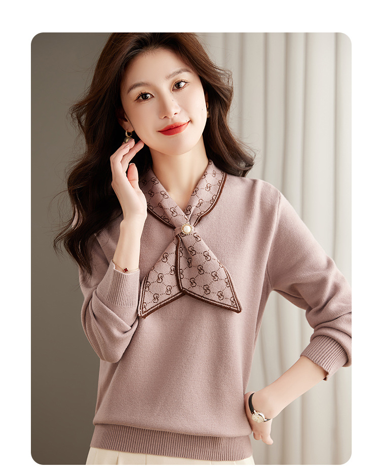 2024 가을과 겨울 새로운 스웨터 최고 중년 여성 패션 스웨터 가을 서양식 기본 셔츠