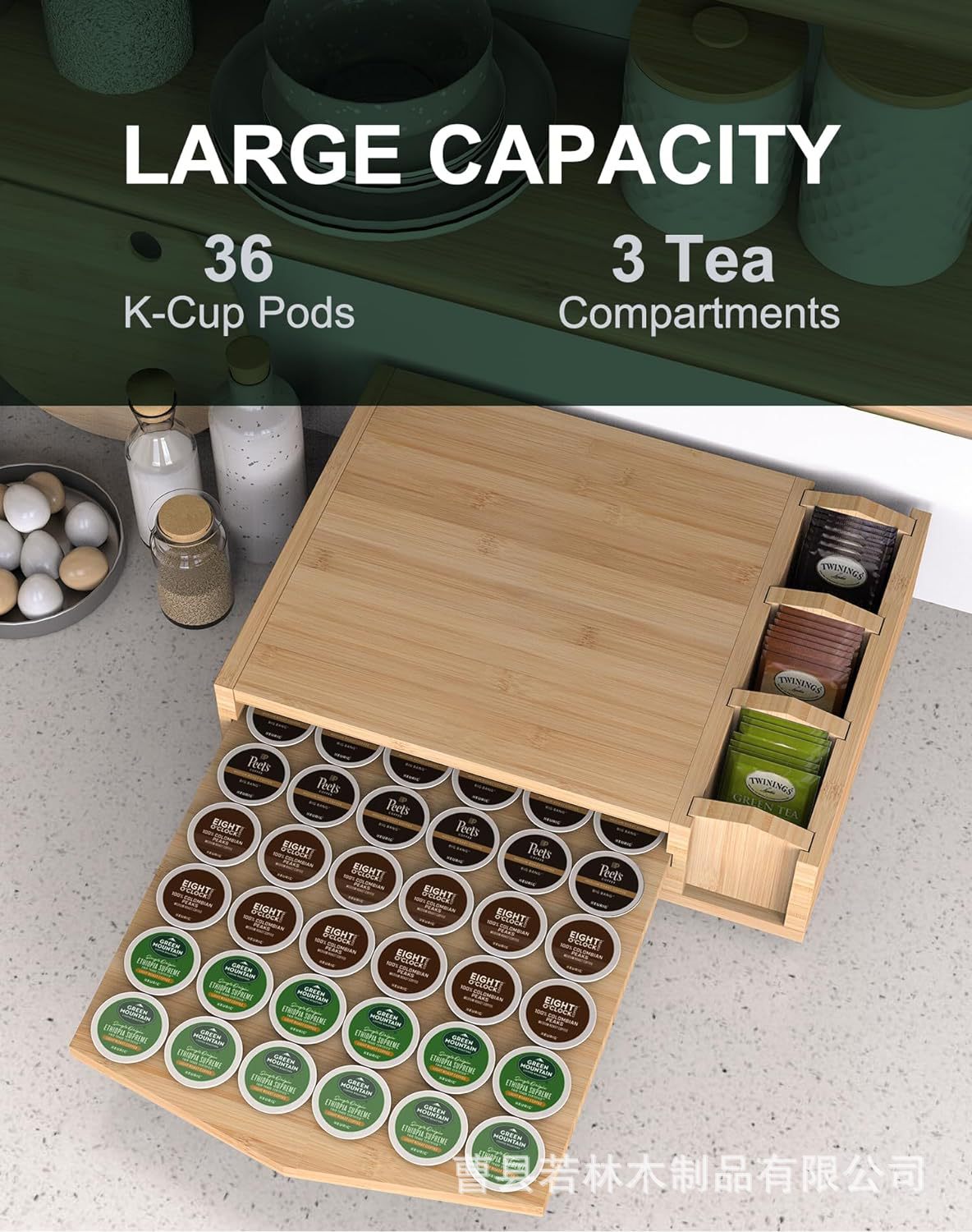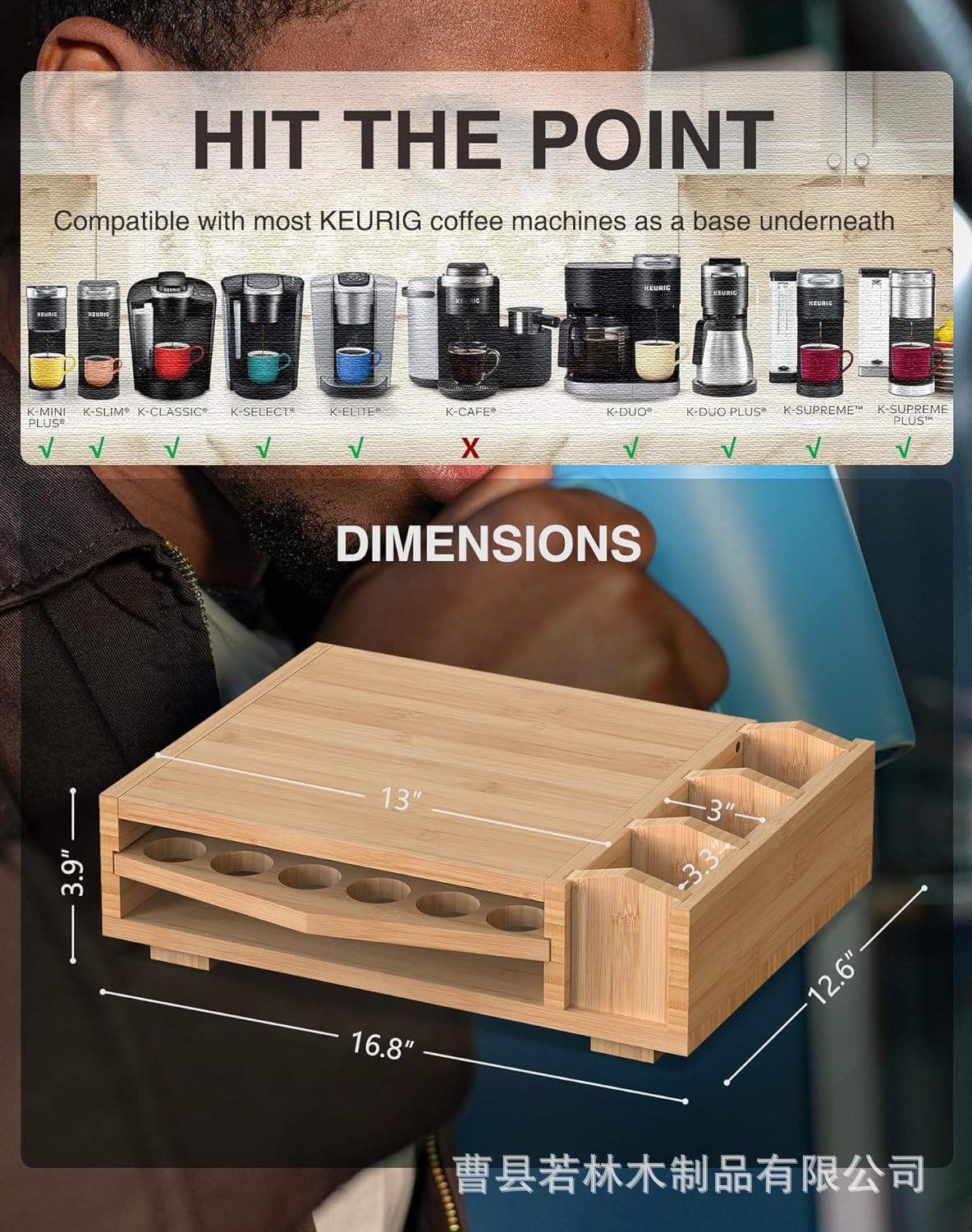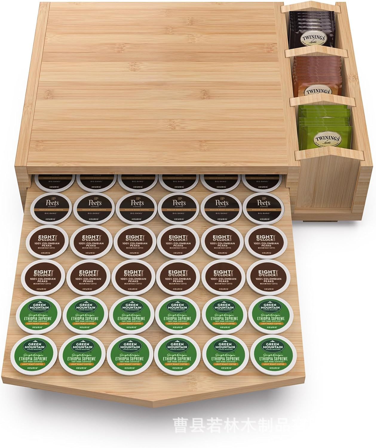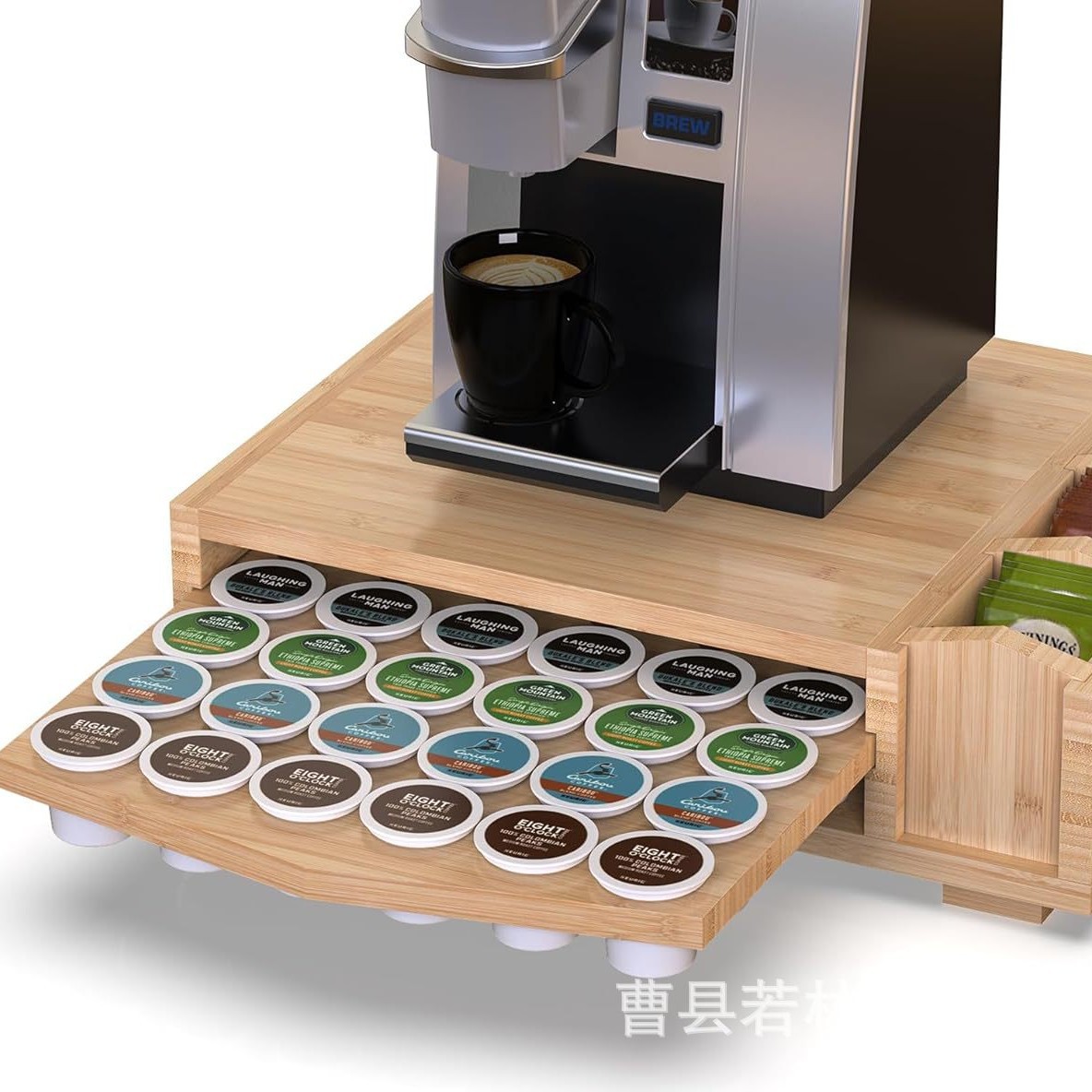 대나무 나무 더블 레이어 드로잉 커피 캡슐 저장 상자 나무 홈 커피 머신 기본 데스크탑 마무리 상자