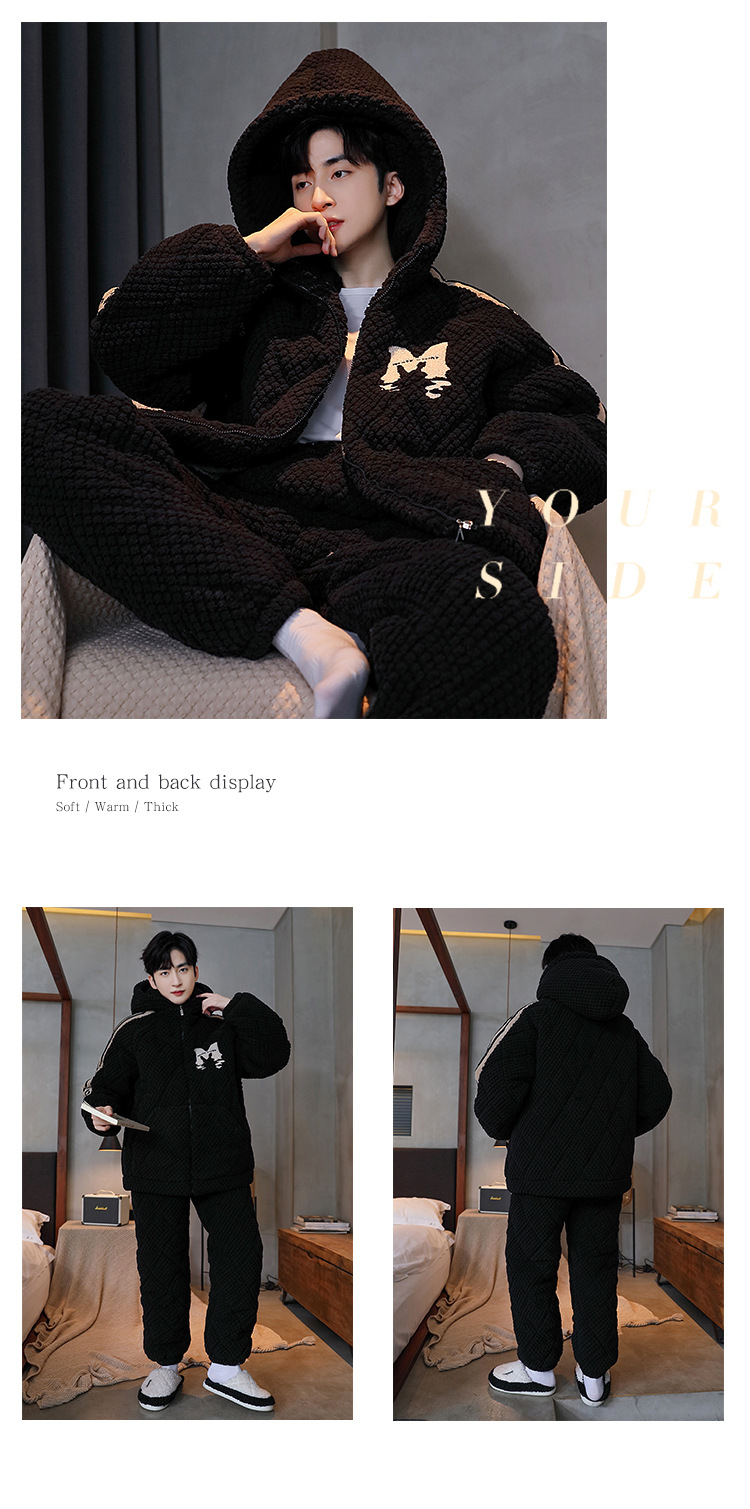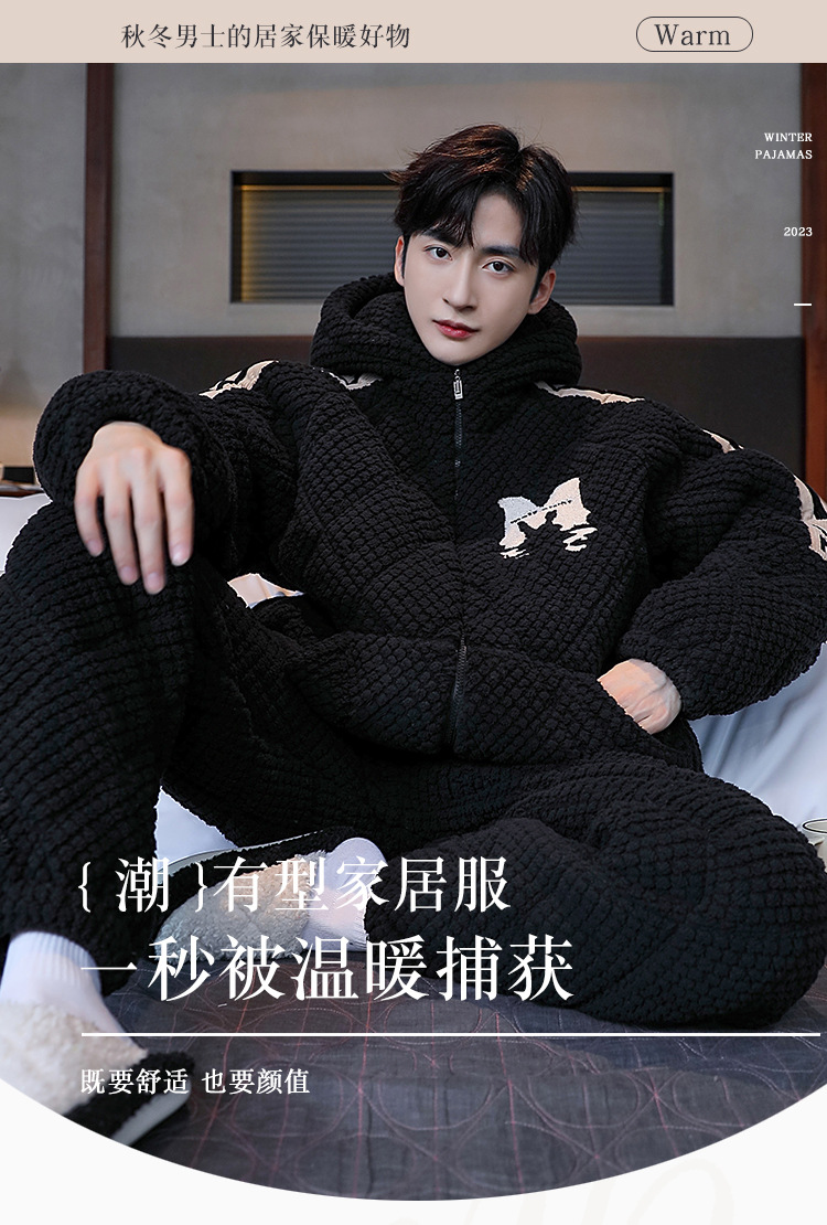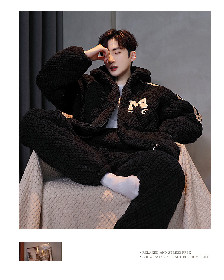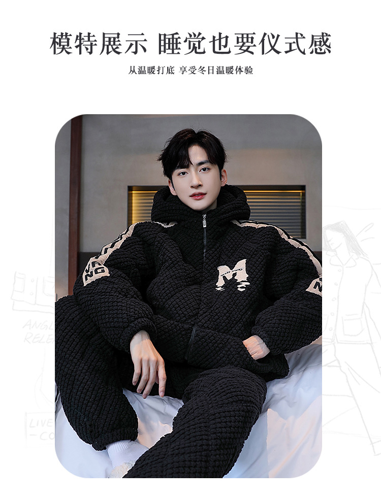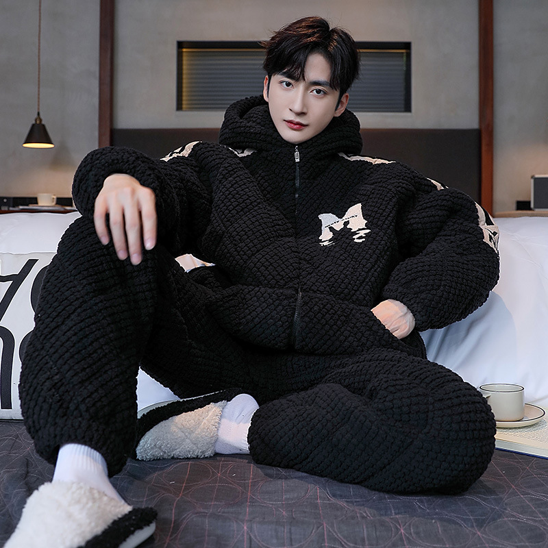 2024 새로운 잠옷 남자의 가을과 겨울 날 산호 양털 기모 두꺼운 3 층 면 따뜻한 플란넬 플러스 사이즈스토어 가기
