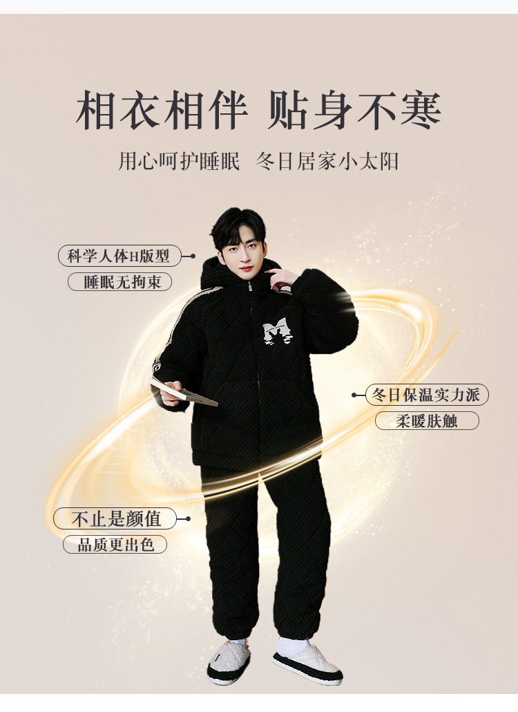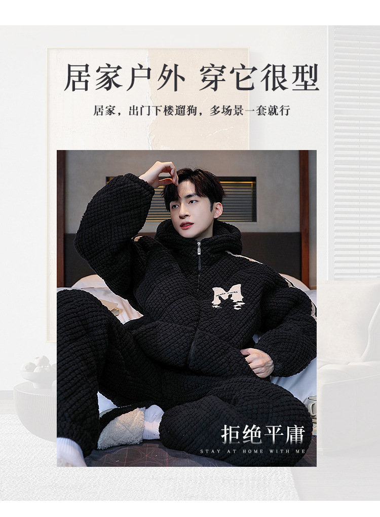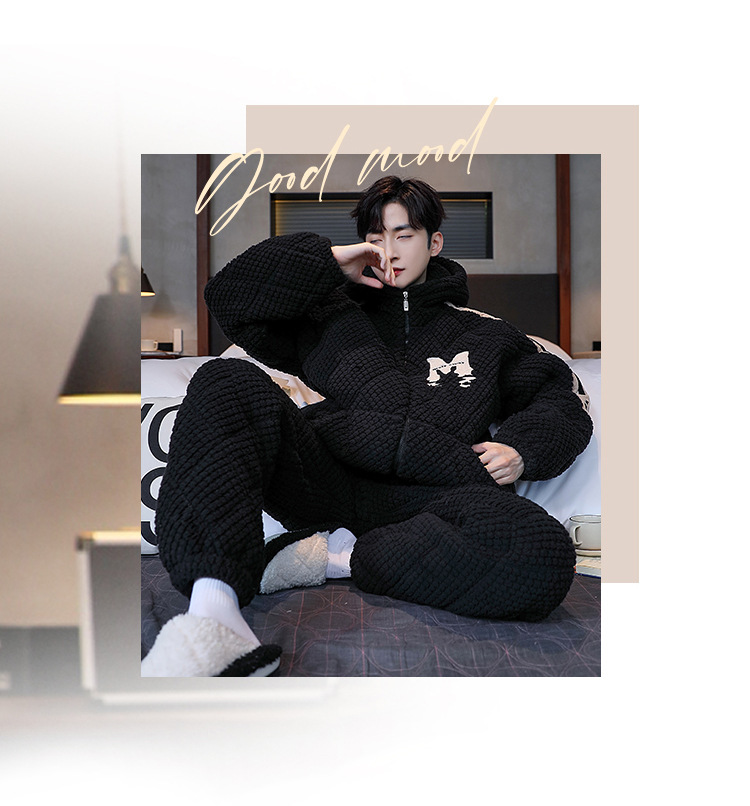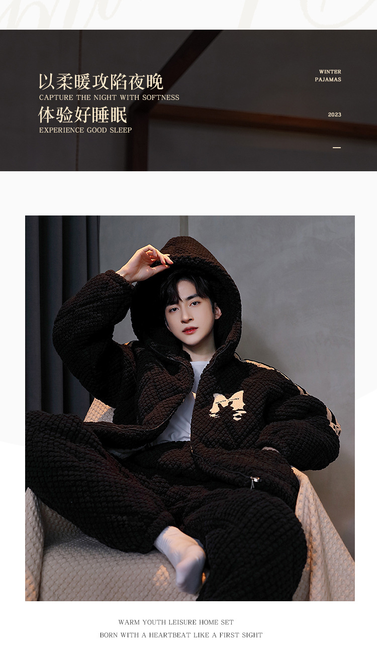 2024 새로운 잠옷 남자의 가을과 겨울 날 산호 양털 기모 두꺼운 3 층 면 따뜻한 플란넬 플러스 사이즈스토어 가기