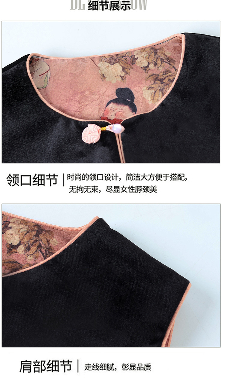 [리틀 당나라] 새 중국 조끼 여성 국가스타일 양면 벨벳 탕 원피스 웨이스트코트 전국 패션 우아한 조끼