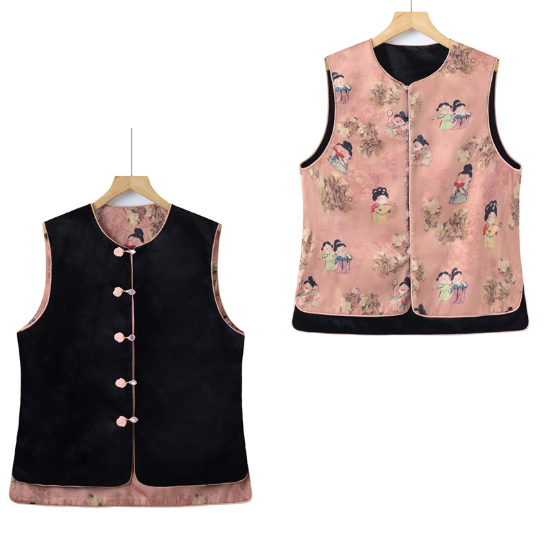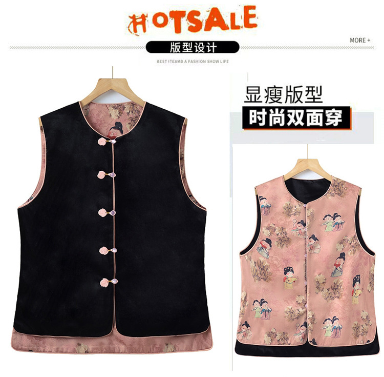 [리틀 당나라] 새 중국 조끼 여성 국가스타일 양면 벨벳 탕 원피스 웨이스트코트 전국 패션 우아한 조끼스토어 가기