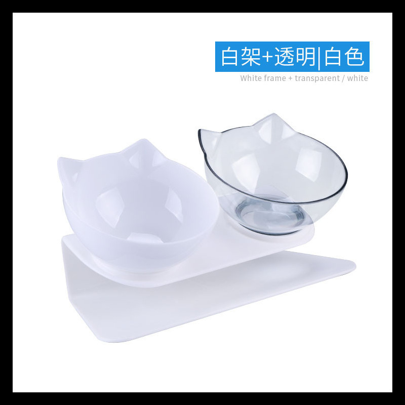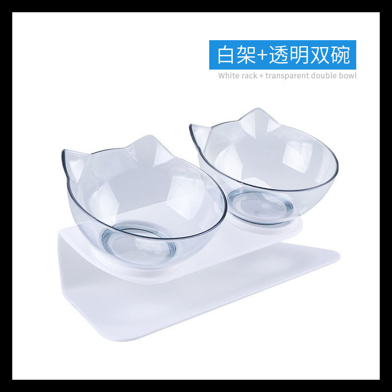 공장 도매 새로운 국경 투명 애완 동물 그릇 높은 발 더블 그릇 목 고양이 개 그릇 애완 동물 그릇 대각선 더블 그릇스토어 가기