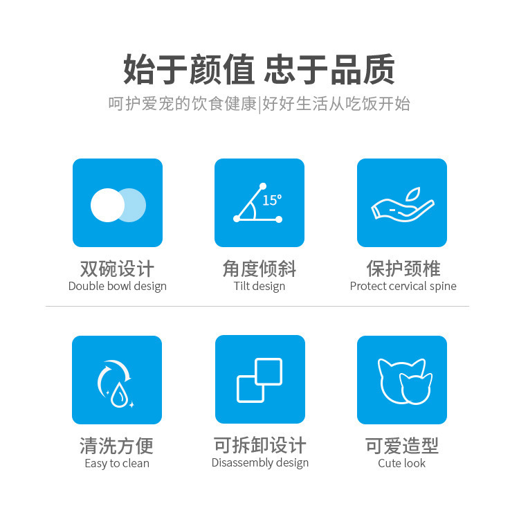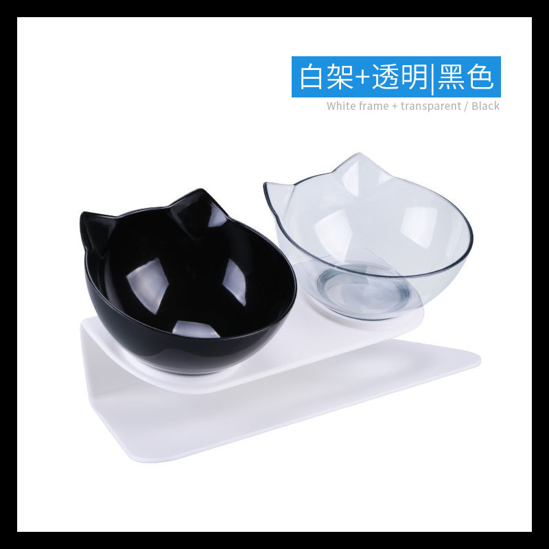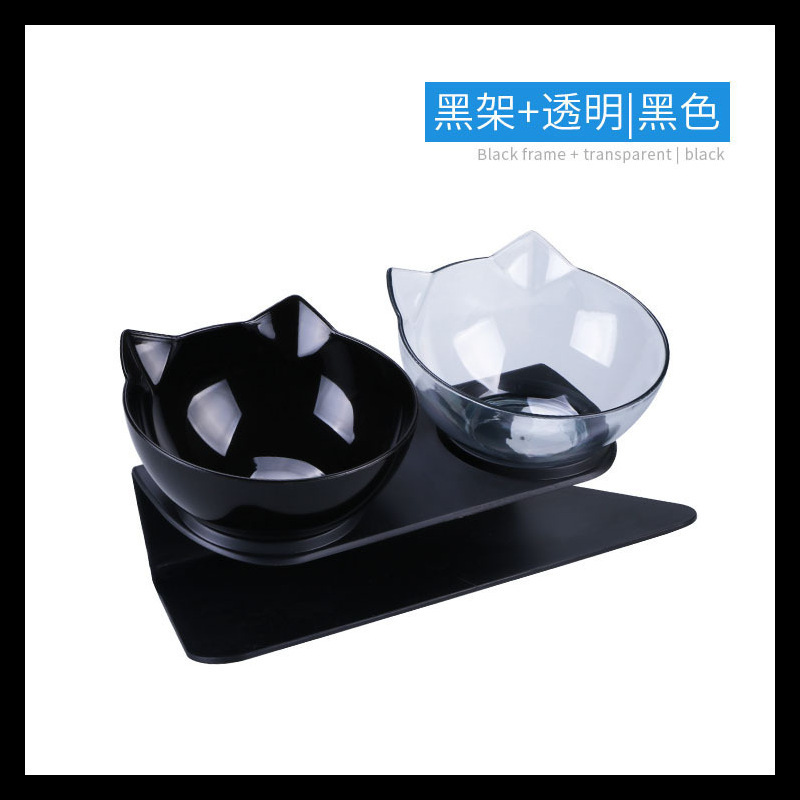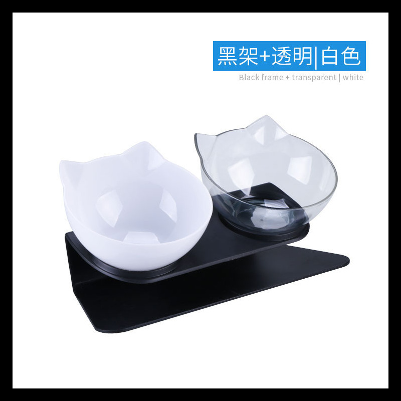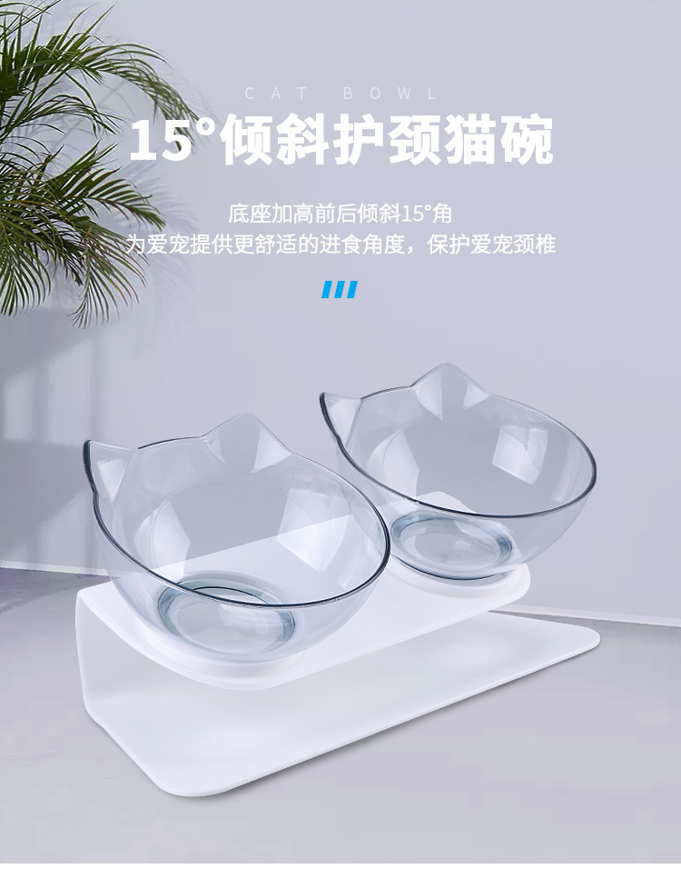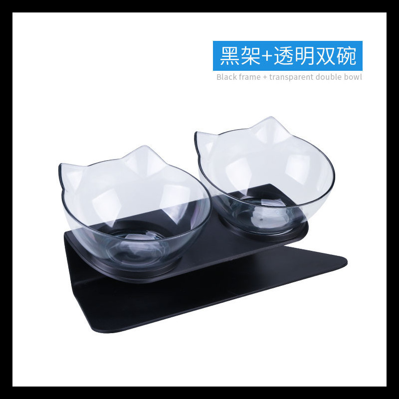 공장 도매 새로운 국경 투명 애완 동물 그릇 높은 발 더블 그릇 목 고양이 개 그릇 애완 동물 그릇 대각선 더블 그릇