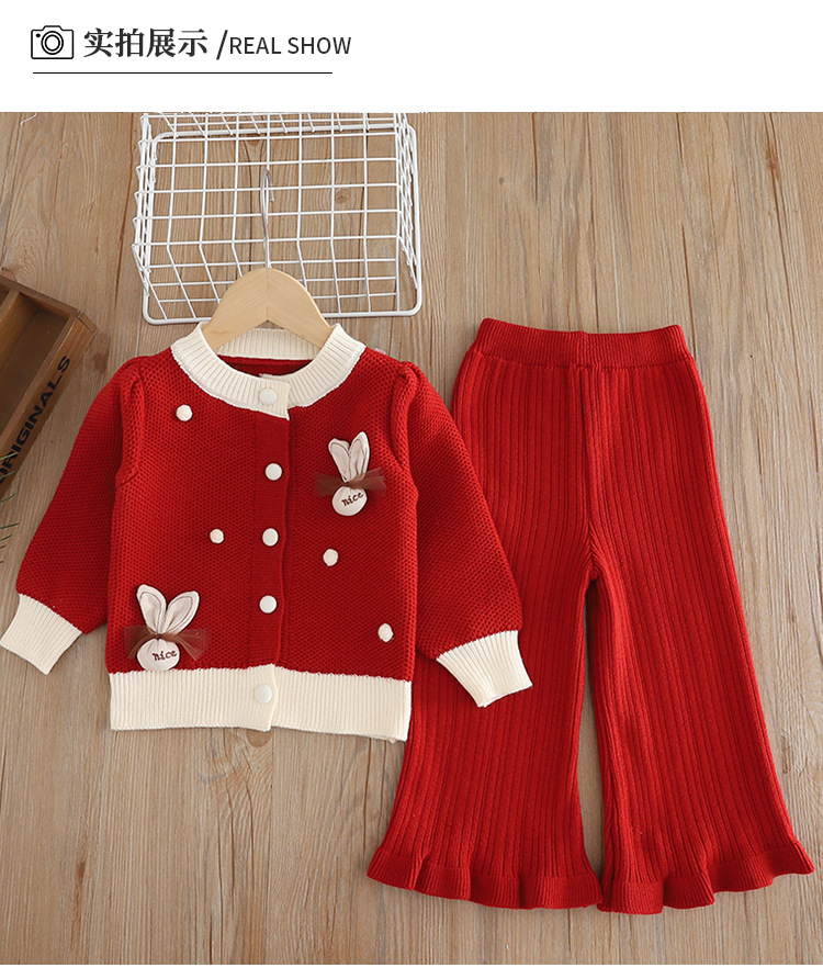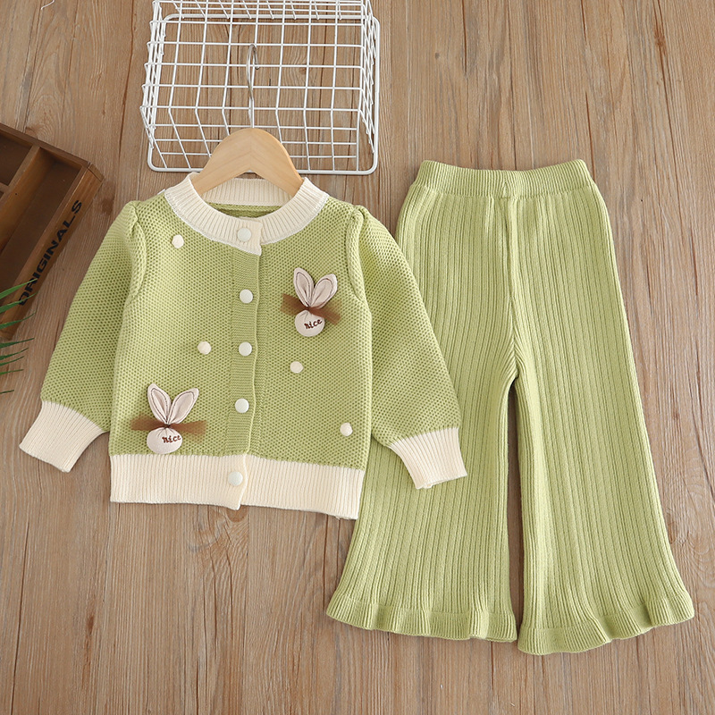 소녀 스웨터 세트 2024 가을과 겨울 새로운 한국 만화 크루 넥 카디건 스웨터 바지 투피스 긴팔