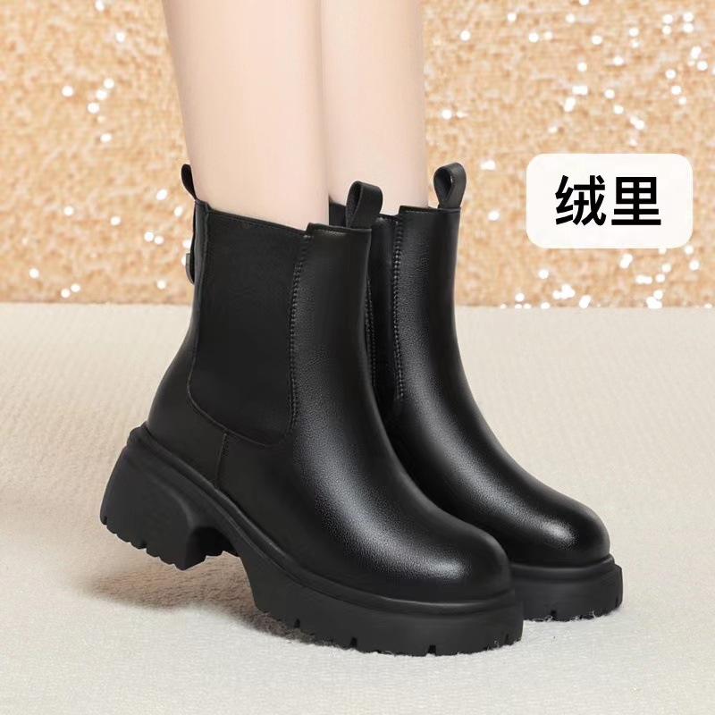 여성용 두꺼운 밑창 마틴 부츠 편안한 새 스타일 짧은 부츠 겨울 기모 두꺼운 코튼 슈즈 모피 원피스 스노우 부츠