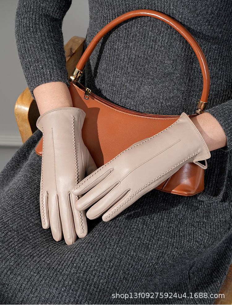 양가죽 정품 가죽 장갑 여성용 겨울 기모 두꺼운 터치 스크린 따뜻한 운전 간단한 패션 방풍 사이클링