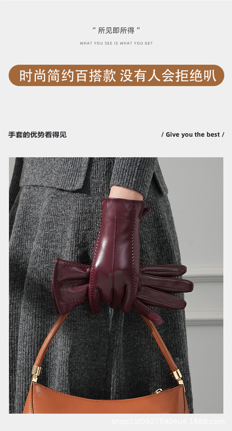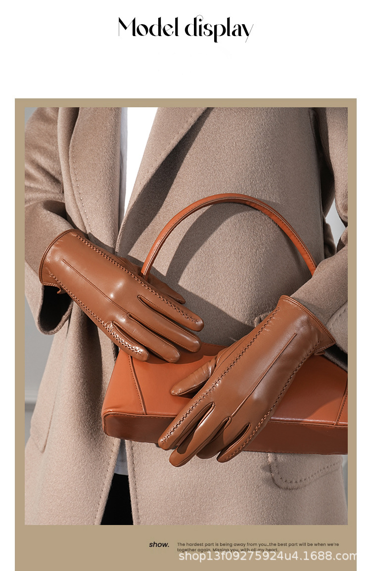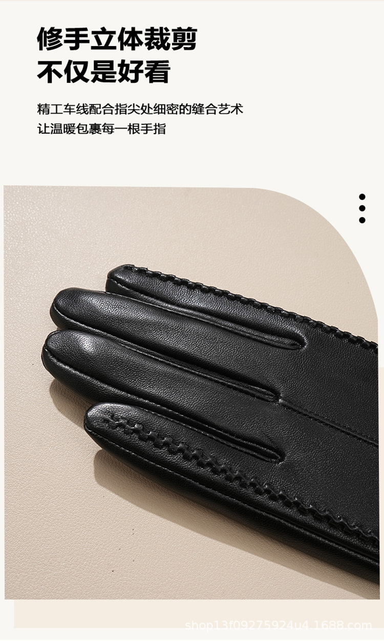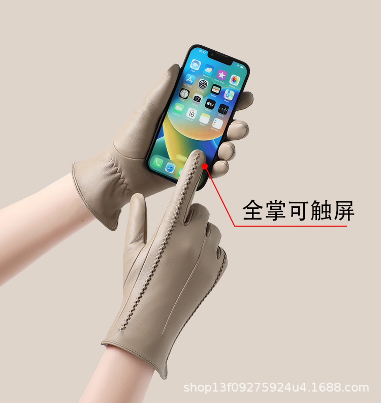 양가죽 정품 가죽 장갑 여성용 겨울 기모 두꺼운 터치 스크린 따뜻한 운전 간단한 패션 방풍 사이클링스토어 가기