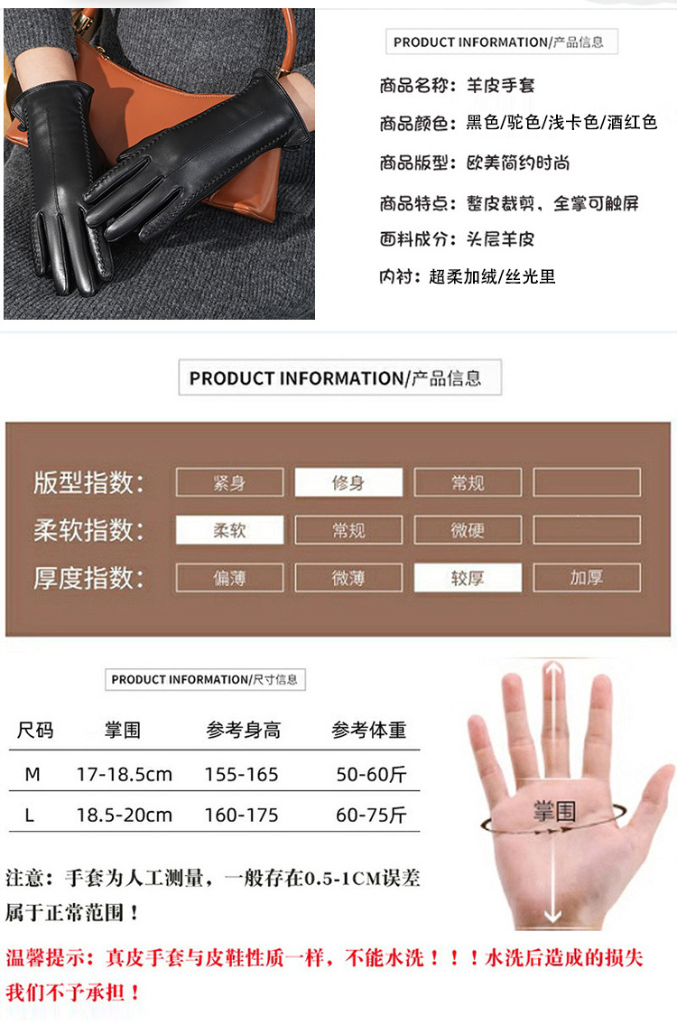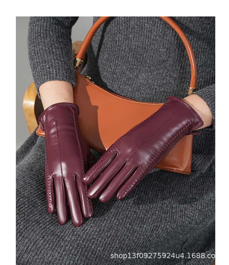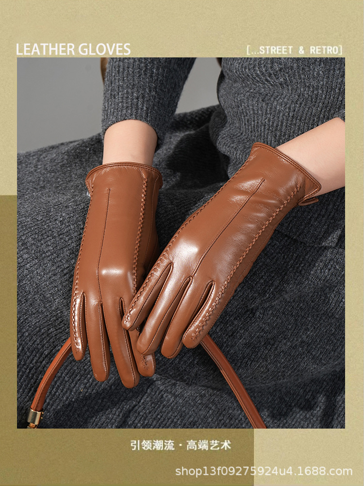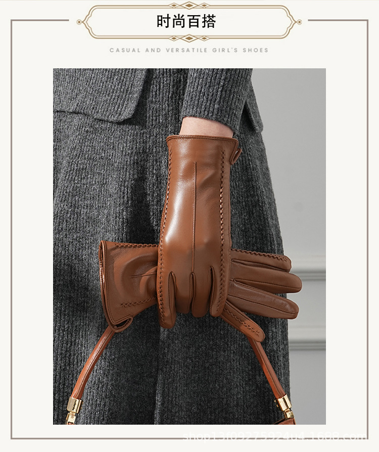 양가죽 정품 가죽 장갑 여성용 겨울 기모 두꺼운 터치 스크린 따뜻한 운전 간단한 패션 방풍 사이클링스토어 가기