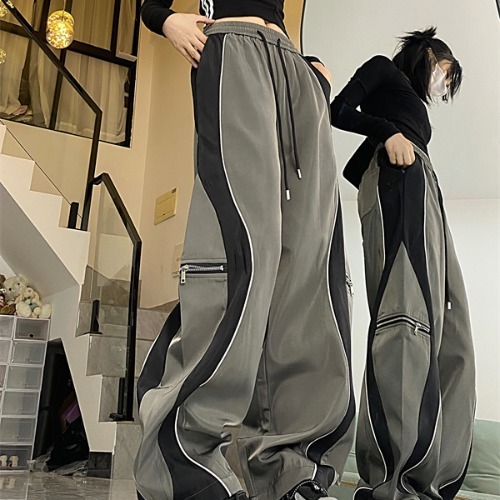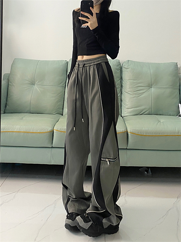 2024 가을과 여름 새로운 바지 남성용 아메리칸 스타일 트렌디 브랜드 스트라이프 루즈 스트레이트 캐주얼 바지 빠른 건조 스포츠 소박한 바지스토어 가기