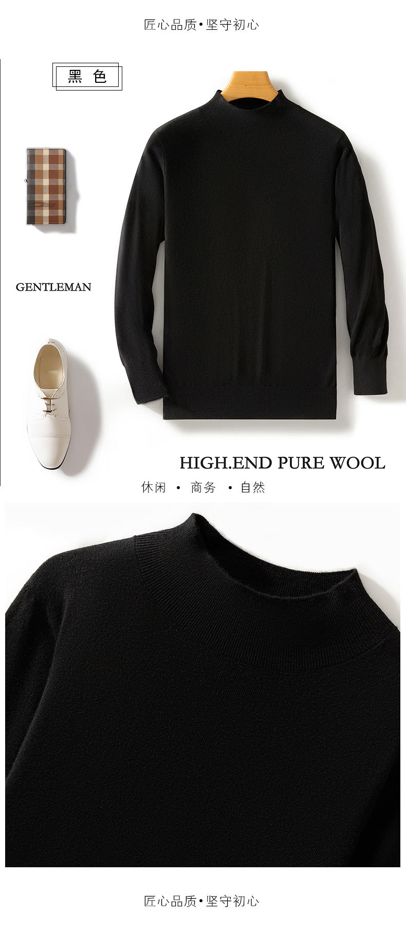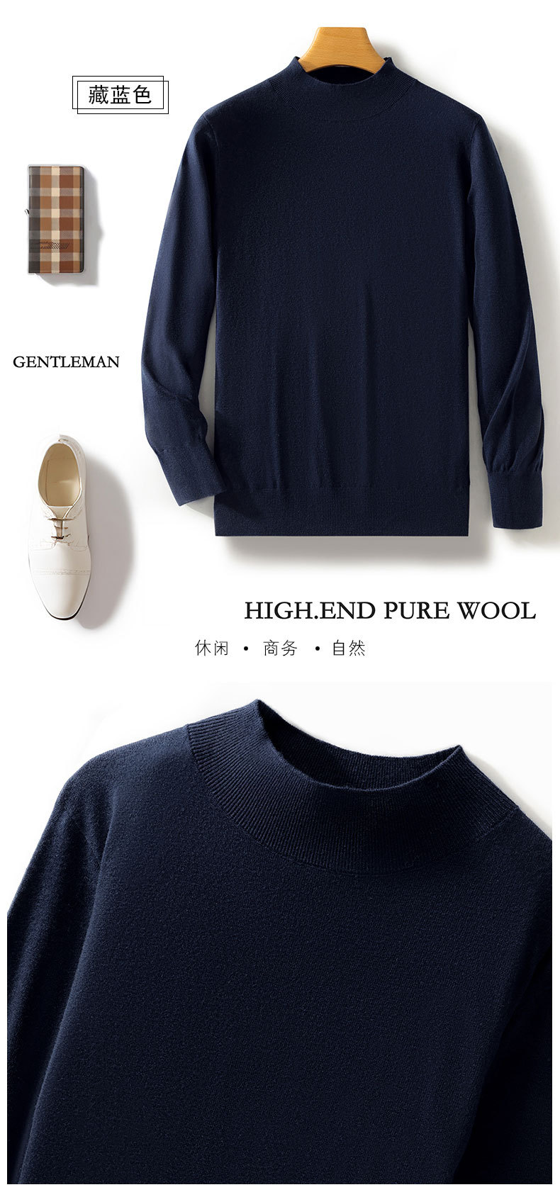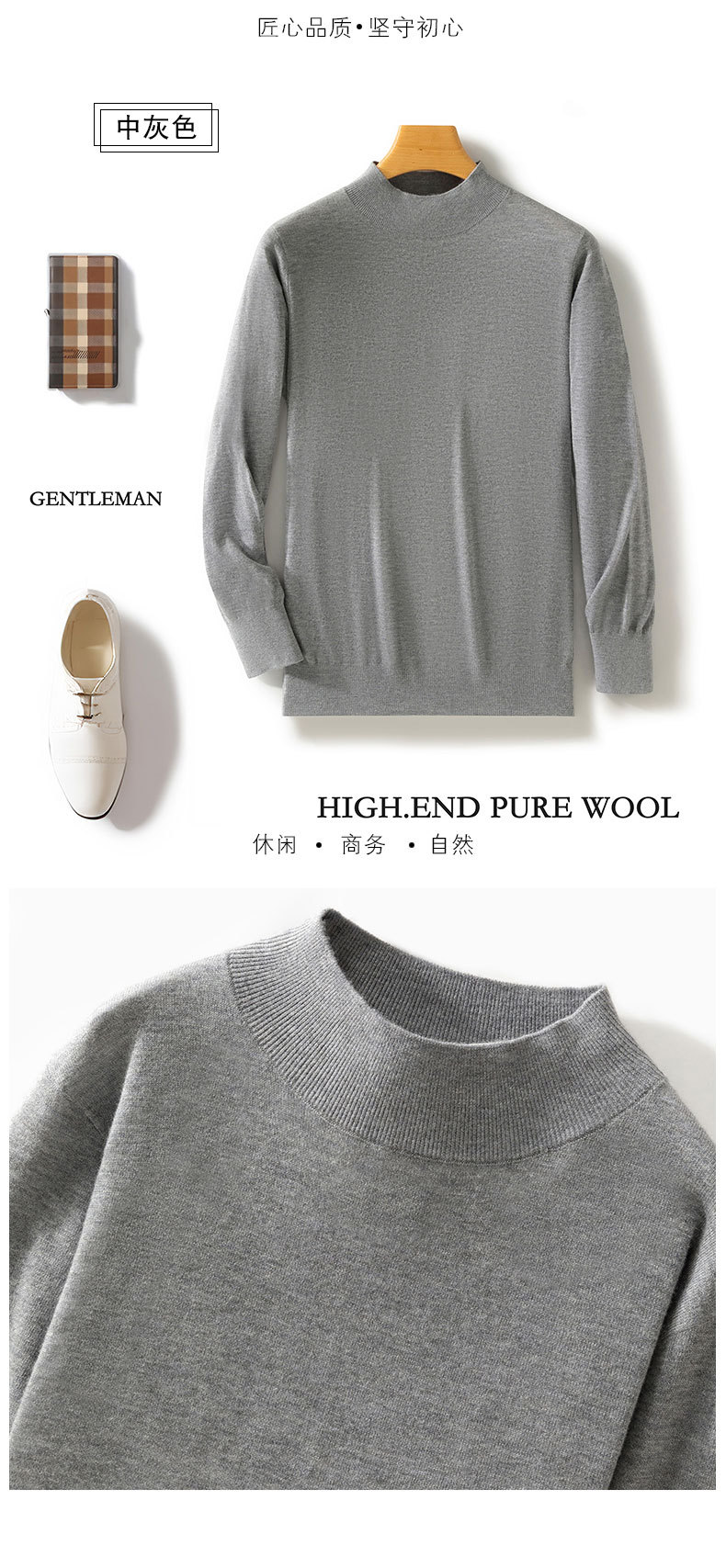 가을과 겨울 새로운 도착 Worsted Wool Half-turtleneck 남성용 스웨터 느슨한 캐주얼 니트 간단한 스웨터베이스 레이어 셔츠스토어 가기