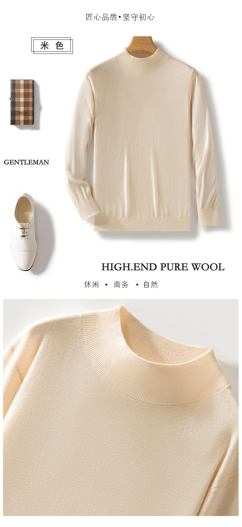 가을과 겨울 새로운 도착 Worsted Wool Half-turtleneck 남성용 스웨터 느슨한 캐주얼 니트 간단한 스웨터베이스 레이어 셔츠