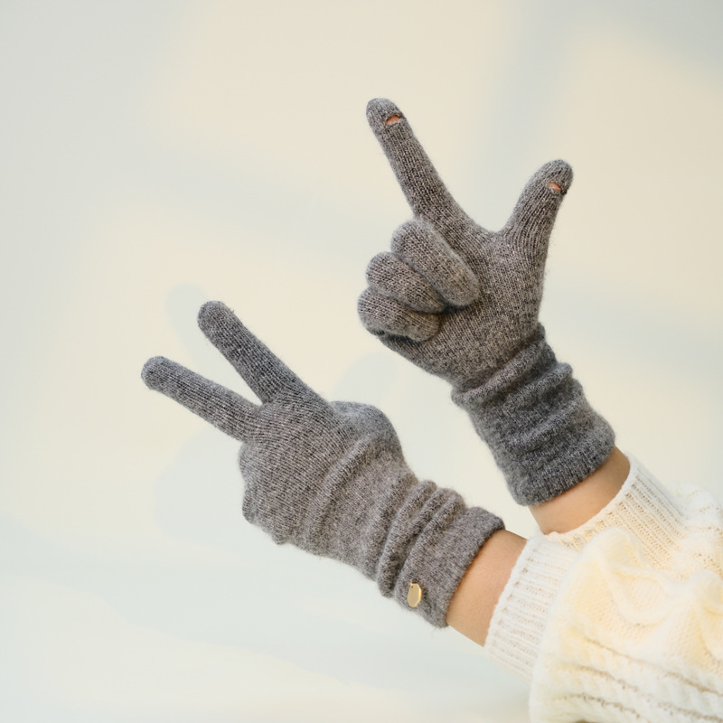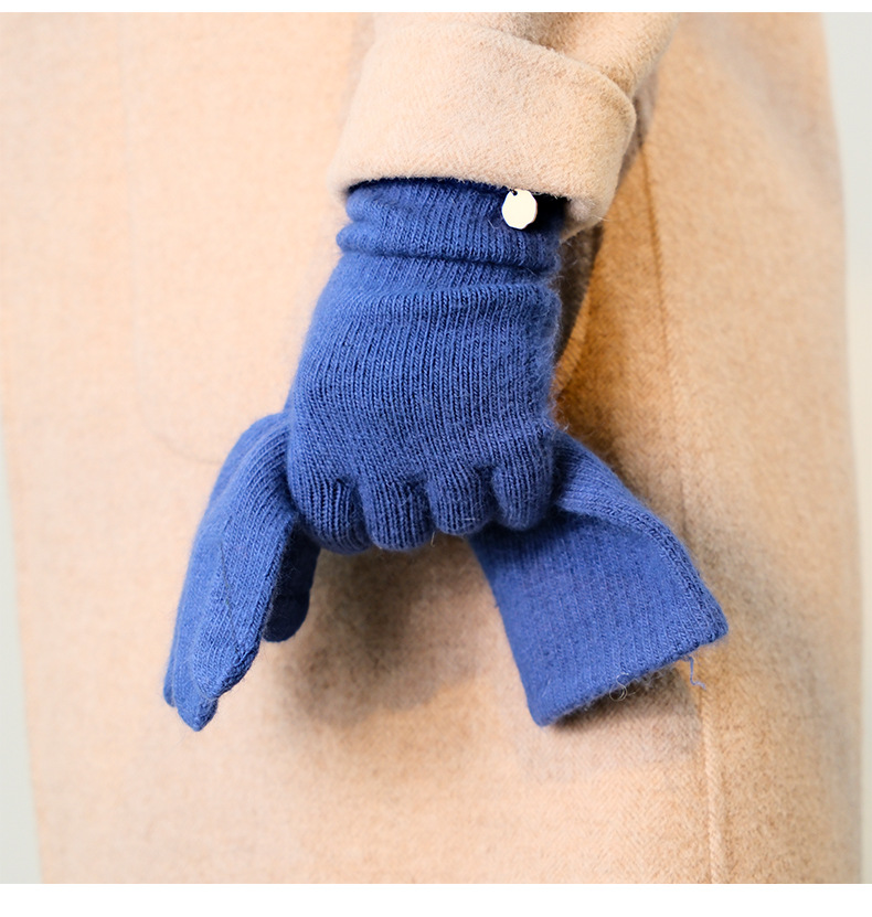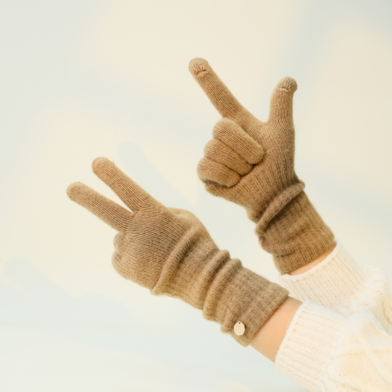 겨울 한국식 너구리 벨벳 니트 롱 장갑 여성용 오픈 핑거 솔리드 컬러 울 라이딩 따뜻한 터치 스크린