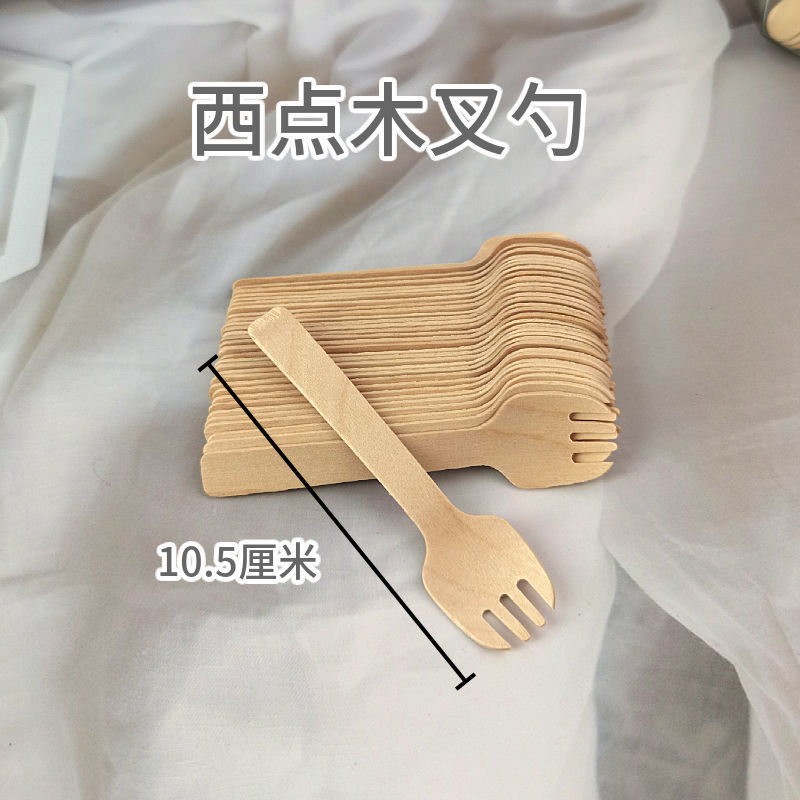 • 페이스트리 나무 포크와 스푼 100개( 10.5cm )