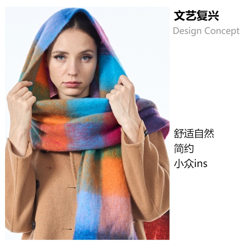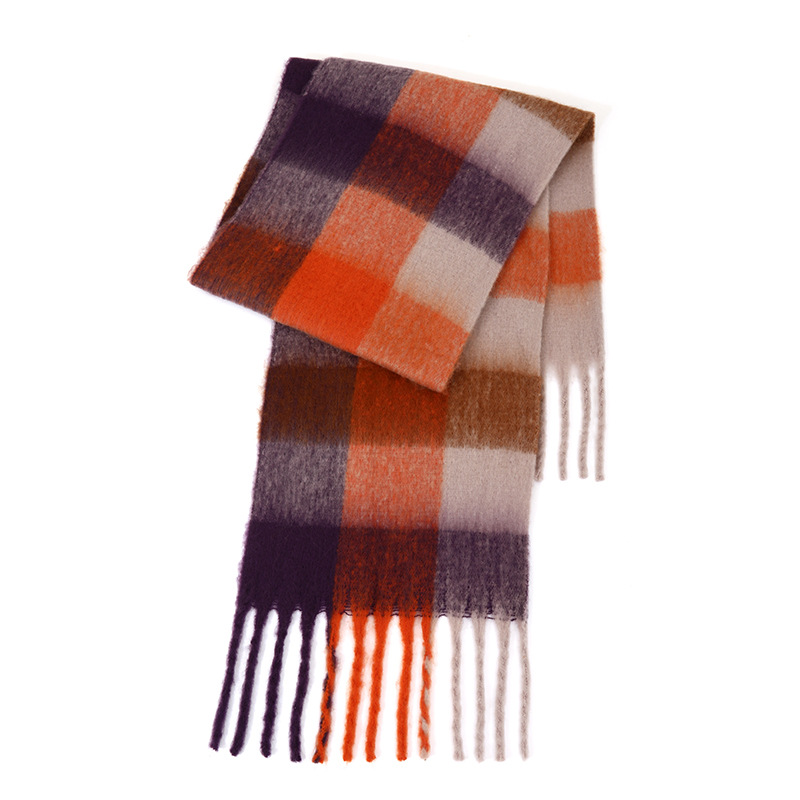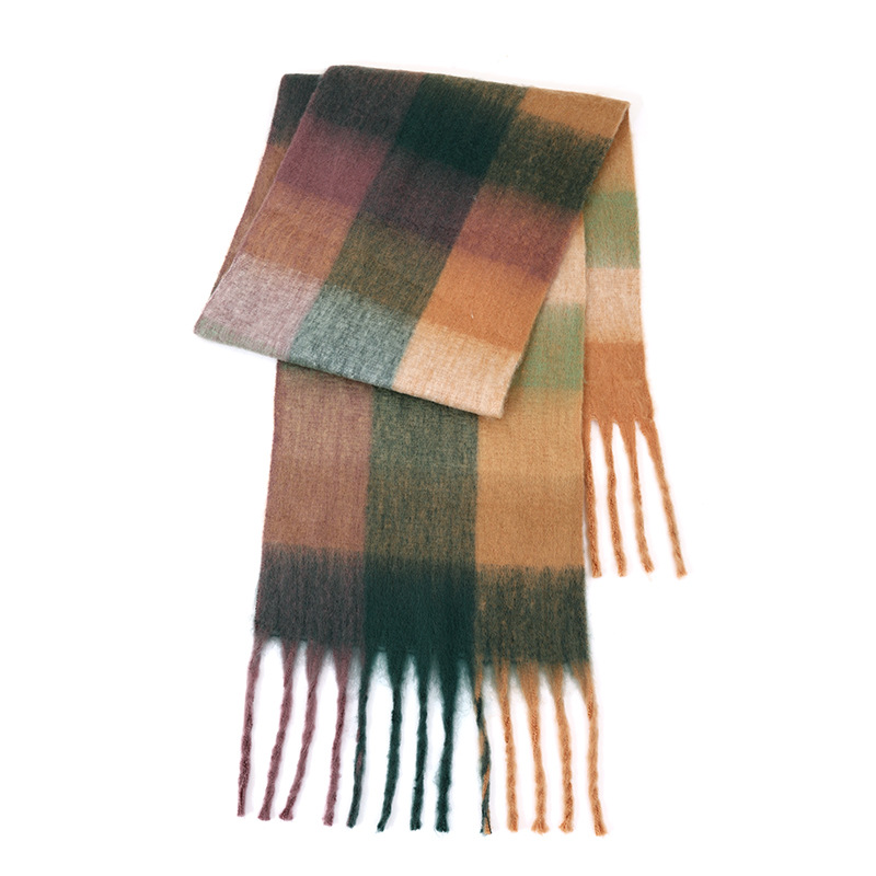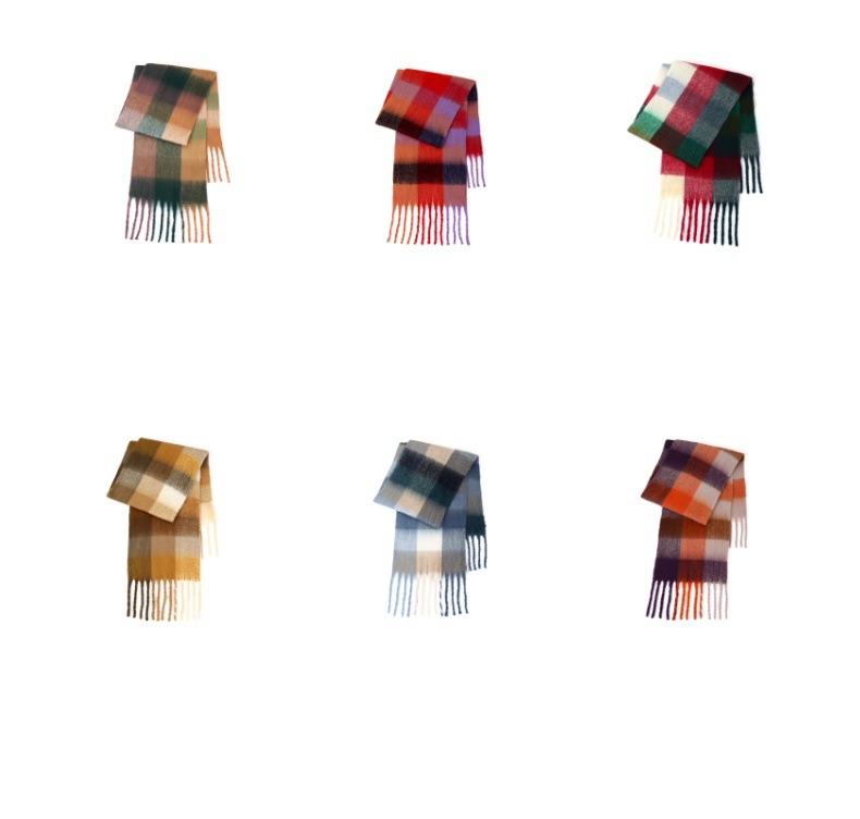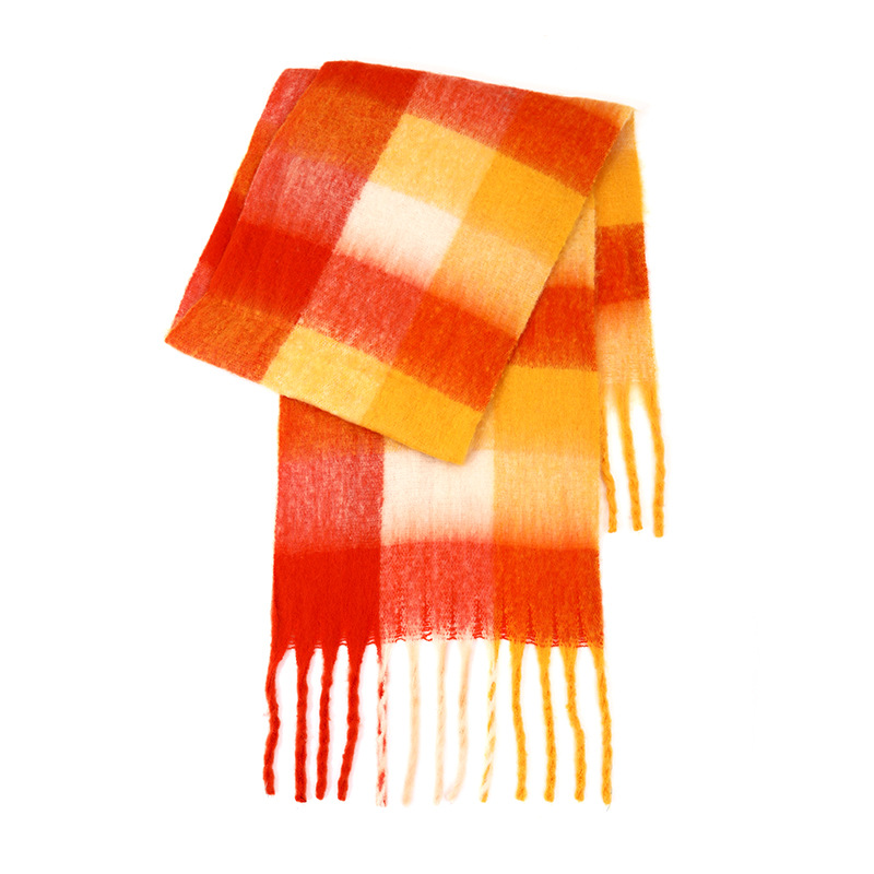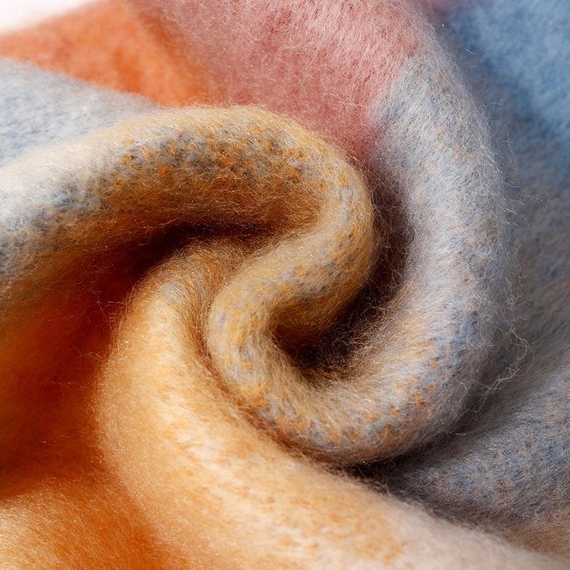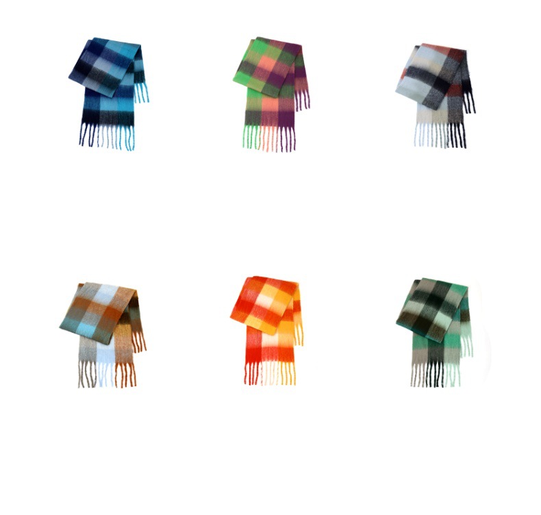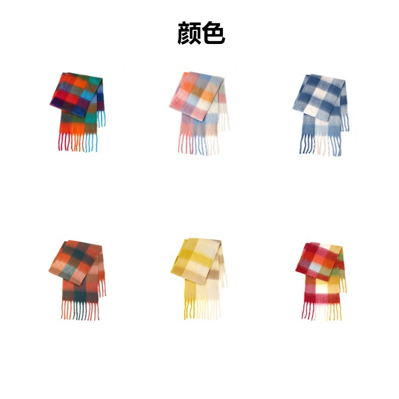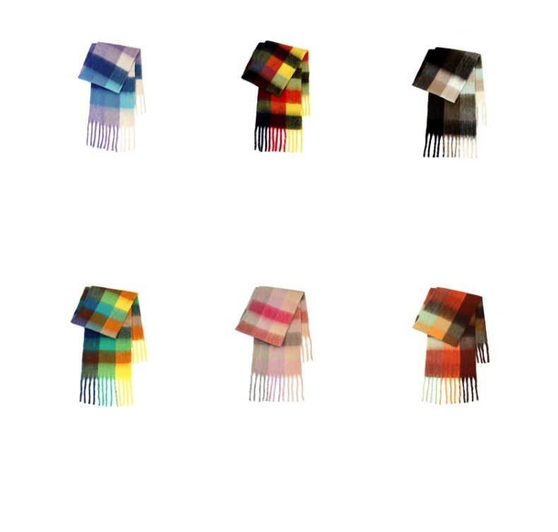 국경 간 폭발 서클 원사 두꺼운 브레이드 모헤어 술 레인보우 격자 무늬 컬러 접합 스카프 겨울 캐시미어 목도리