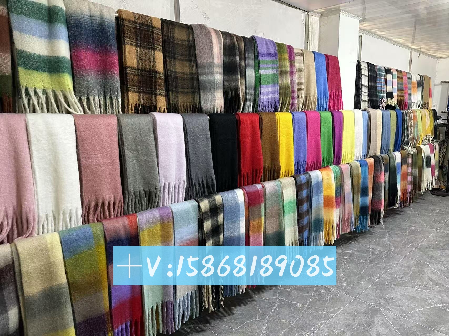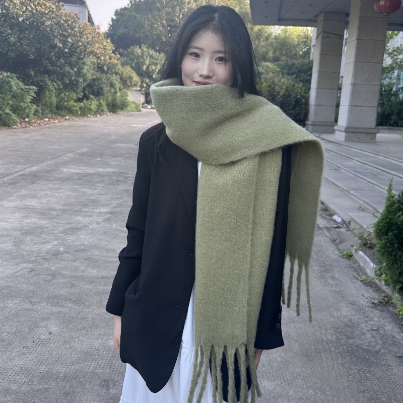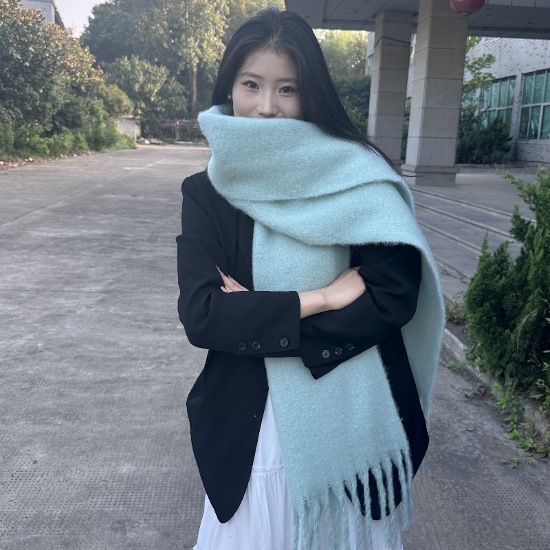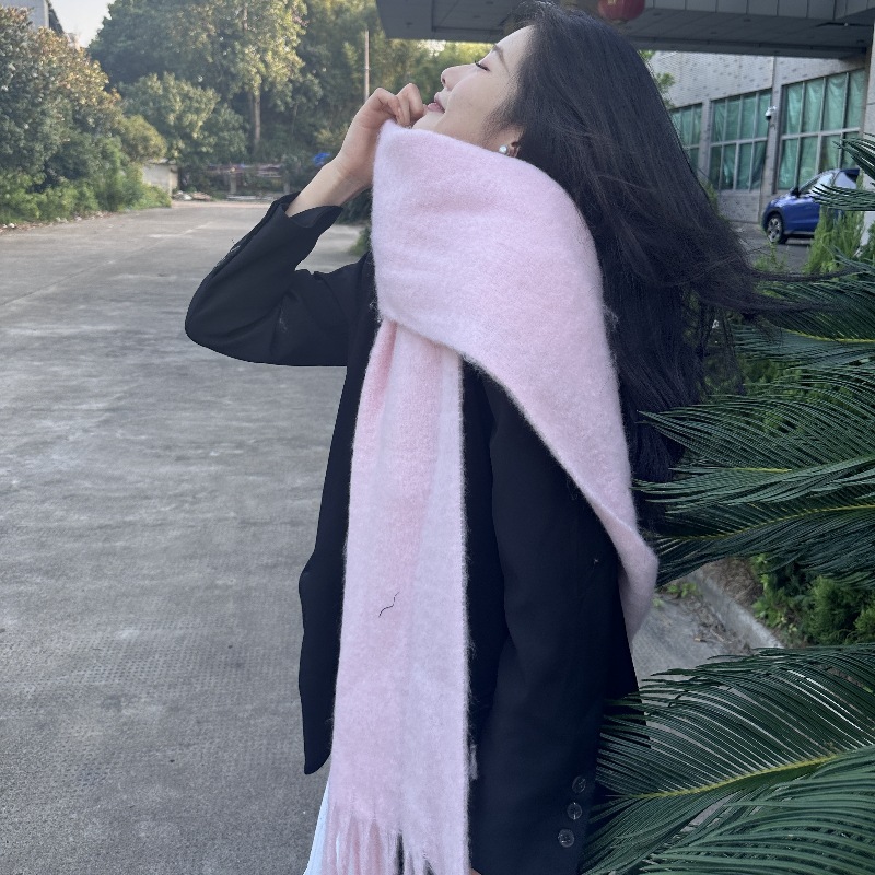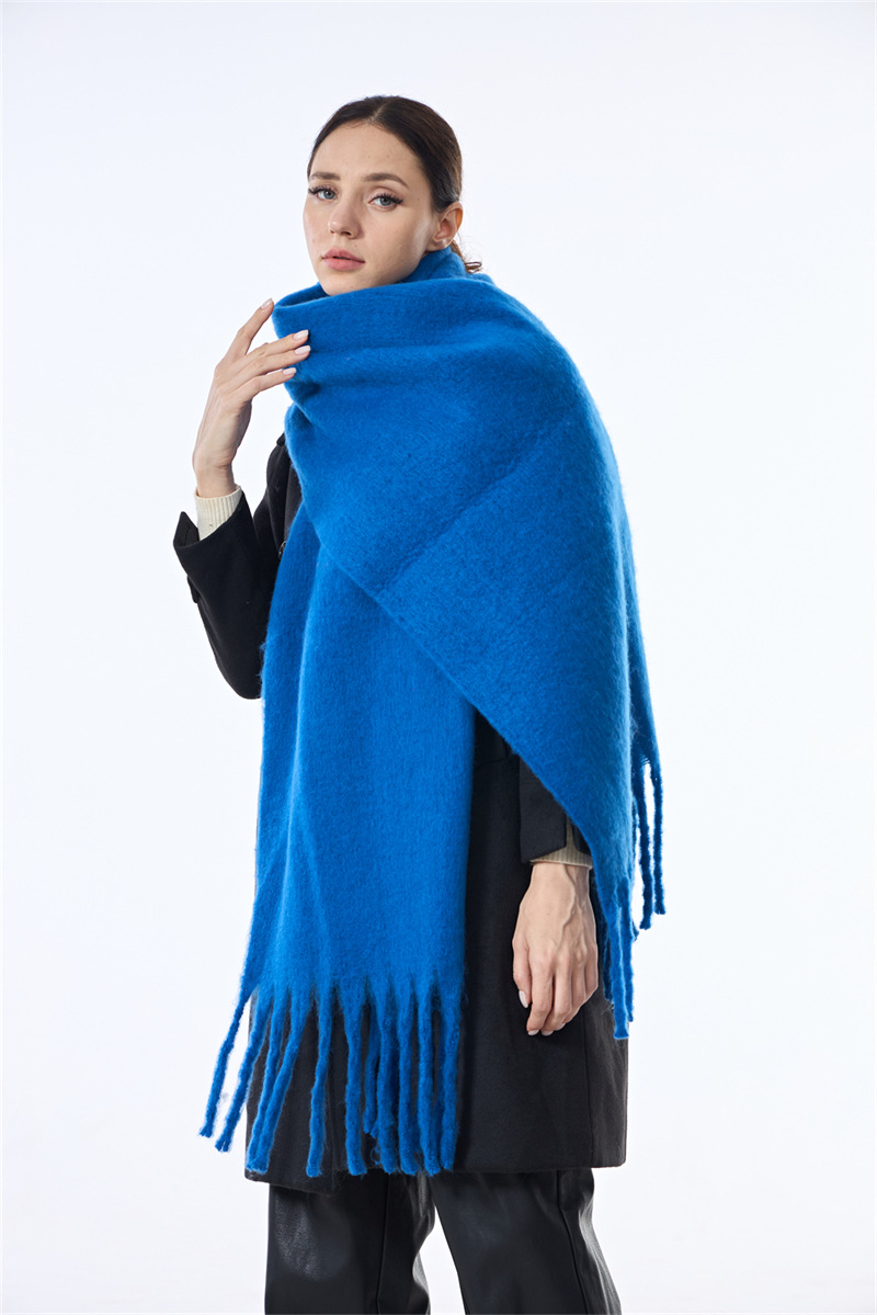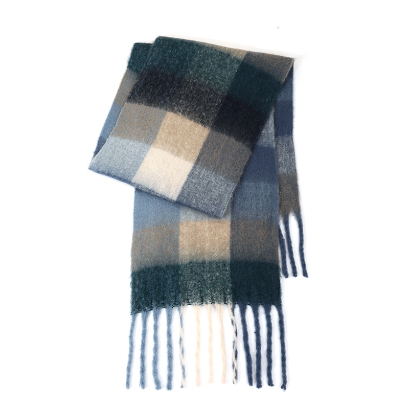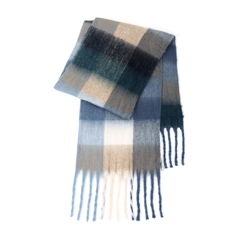 국경 간 폭발 서클 원사 두꺼운 브레이드 모헤어 술 레인보우 격자 무늬 컬러 접합 스카프 겨울 캐시미어 목도리
