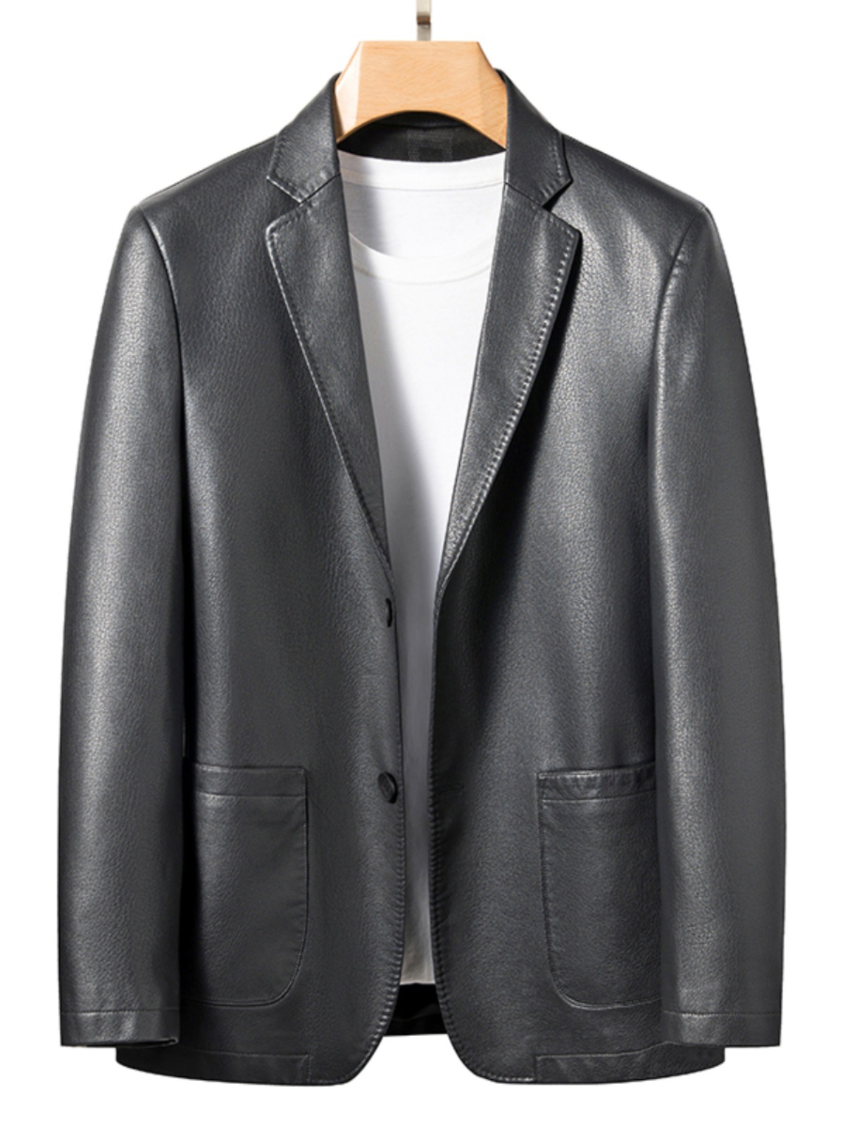 가죽 코트 봄과 가을 코트 가죽 세트 양가죽 자켓 남성 중년 슬림 핏 비즈니스 캐주얼 가죽 세트스토어 가기