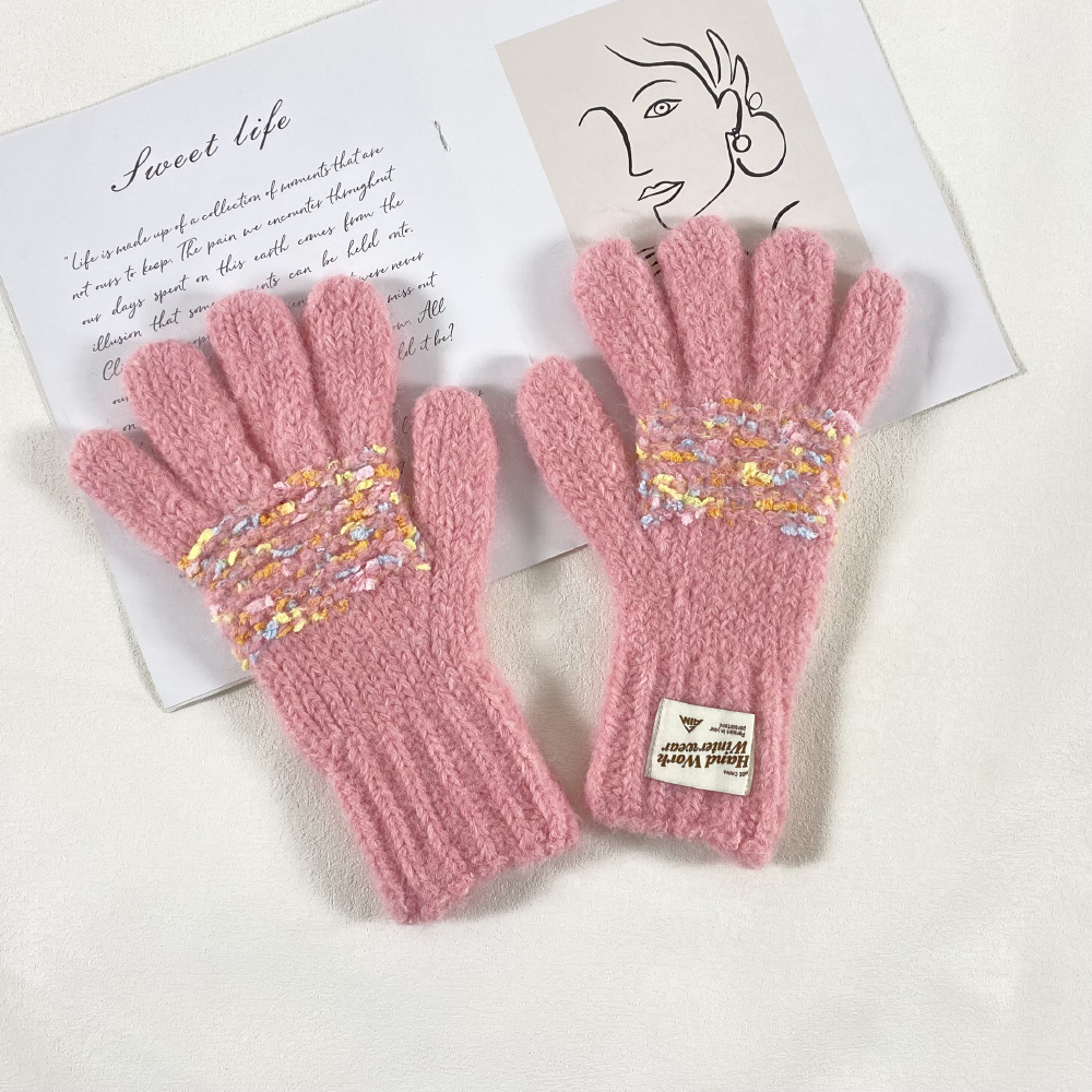 한국 스타일 같은 스타일 레인보우 설탕 콩 양모 장갑 한국 겨울 학생 따뜻한 손가락 사이클링 스타일스토어 가기