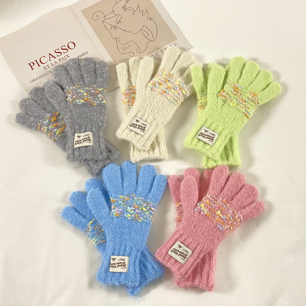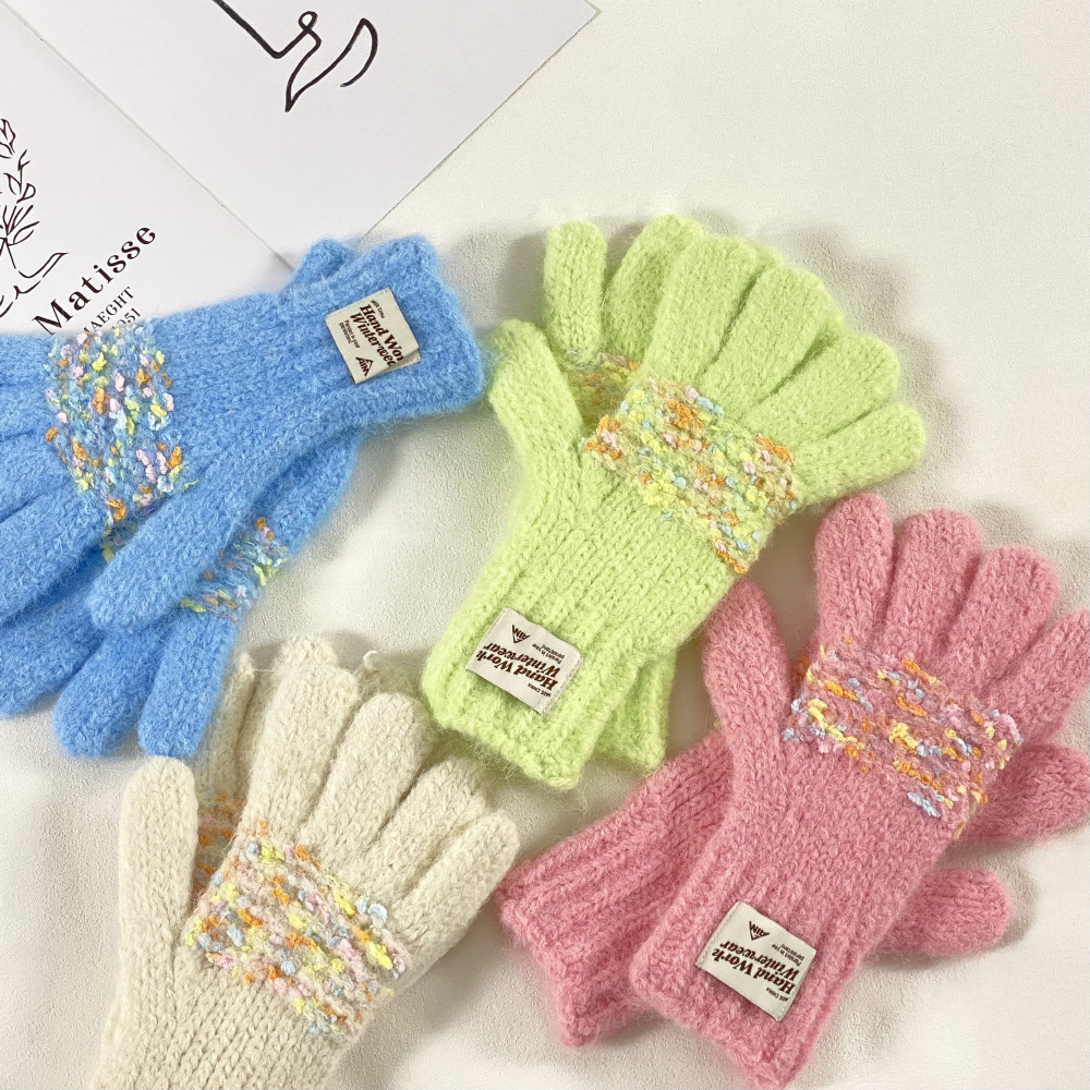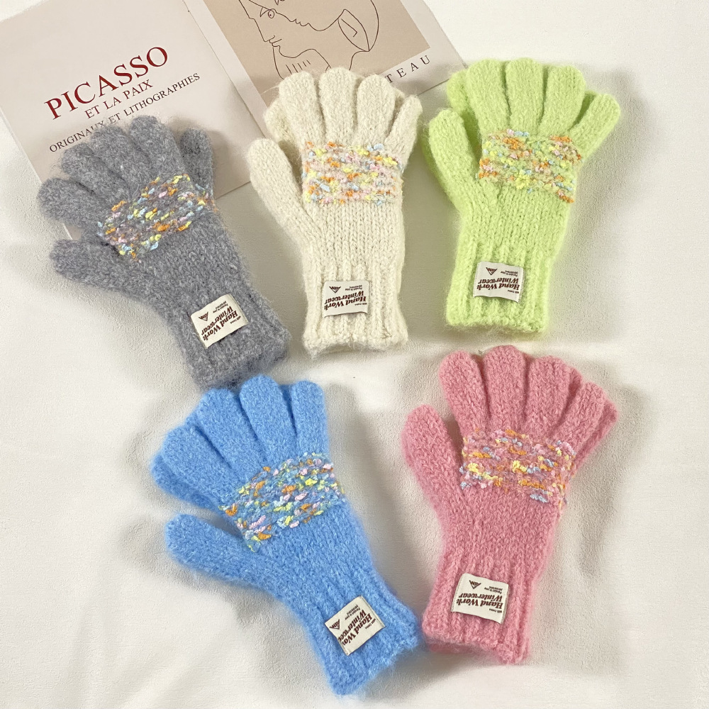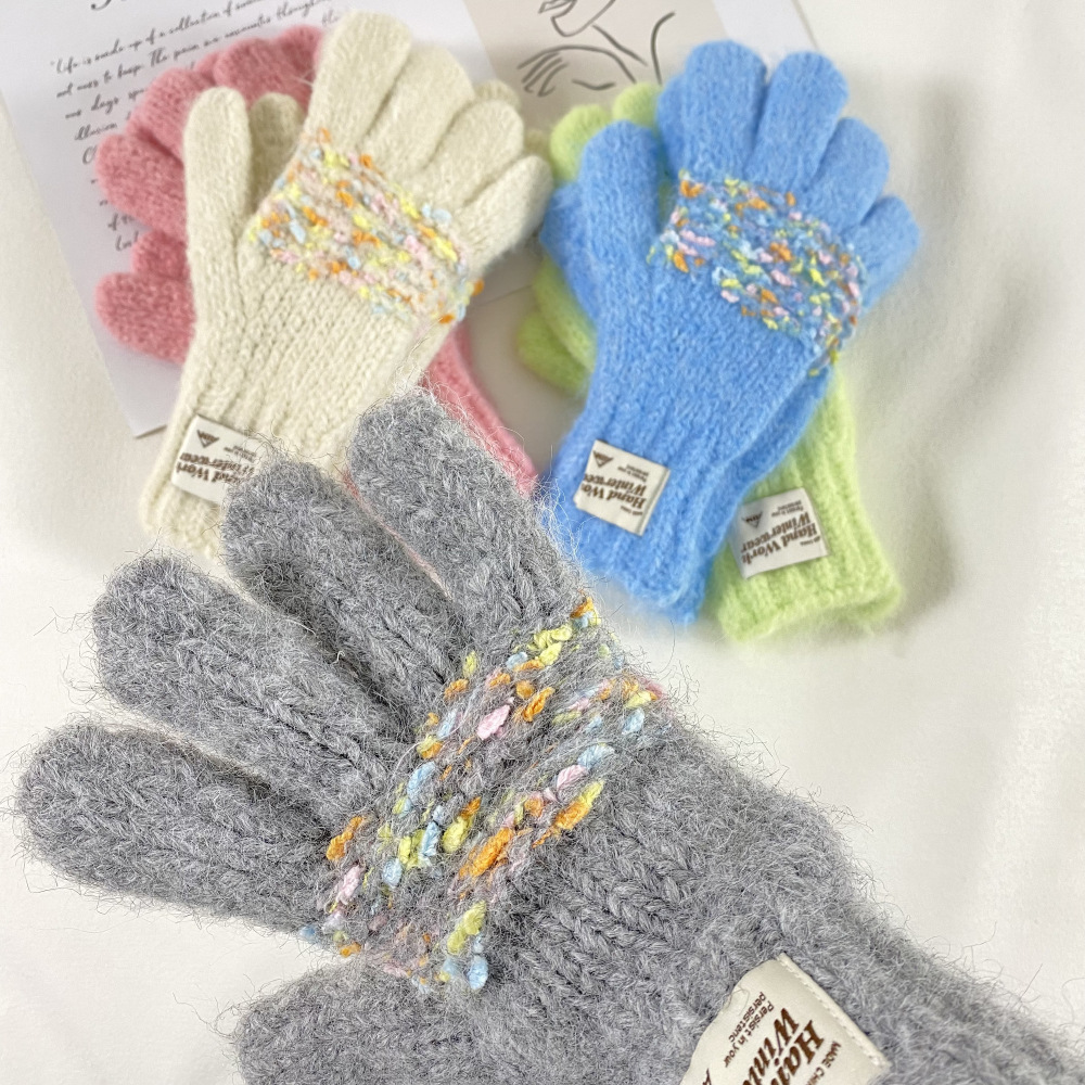 한국 스타일 같은 스타일 레인보우 설탕 콩 양모 장갑 한국 겨울 학생 따뜻한 손가락 사이클링 스타일