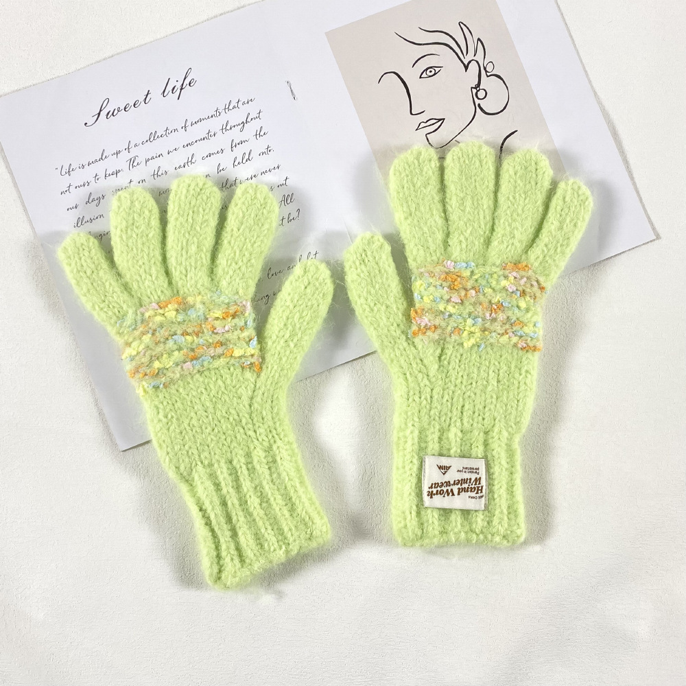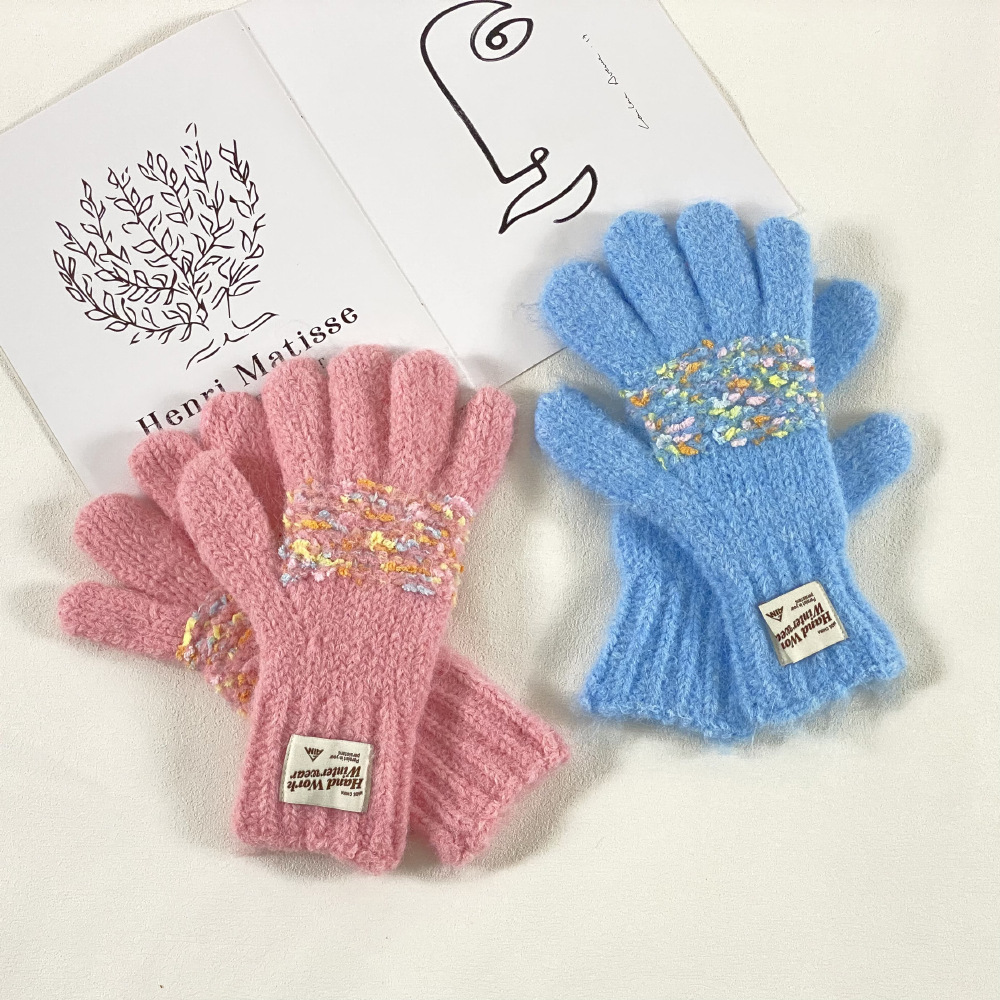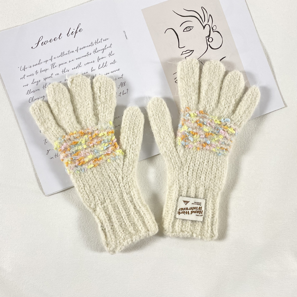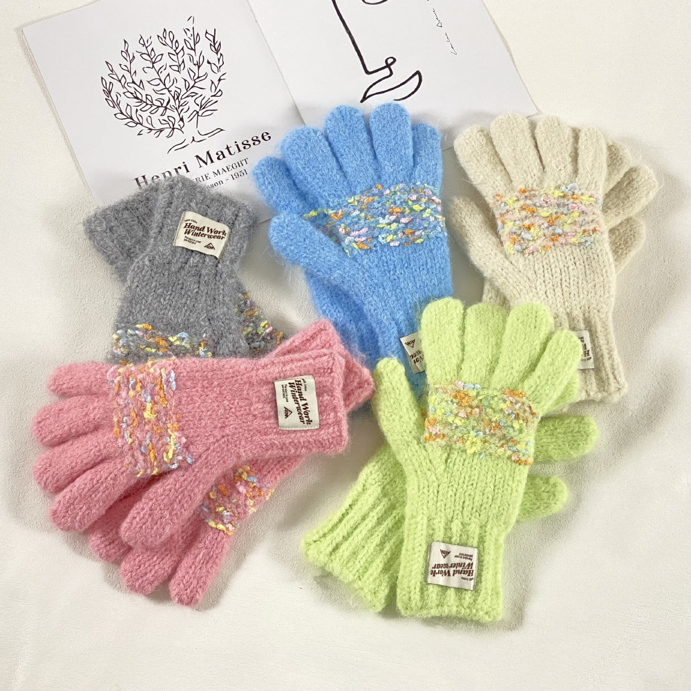 한국 스타일 같은 스타일 레인보우 설탕 콩 양모 장갑 한국 겨울 학생 따뜻한 손가락 사이클링 스타일