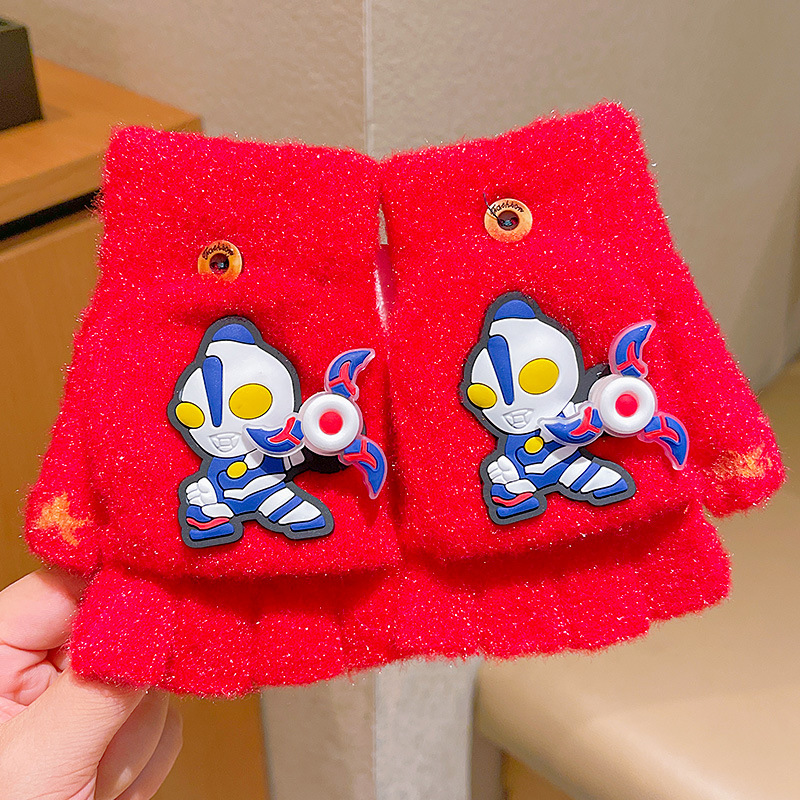 새로운 어린이 사이클론 울트라 맨 하프 핑거 장갑 5 손가락 장갑 니트 플립 온 남자의 손가락 새는 글쓰기 겨울 따뜻함