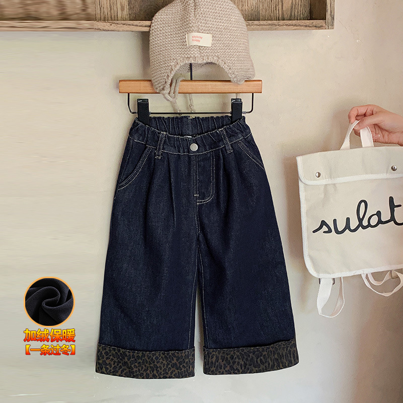 여아용 데님 팬츠, 가을 겨울용 기모 안감 바지, 아동용 일체형 기모 바지, 유아용 두꺼운 와이드 팬츠, 여아 겨울 바지
