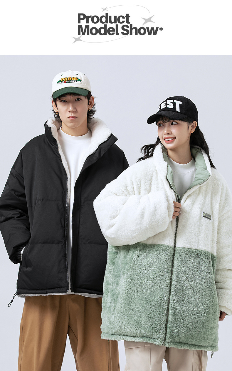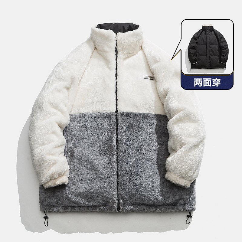 Jack Chuyang 양면 양털 양털 양털 양털 양털 착용 코튼 패딩 코트 남자 새 겨울 기모 두꺼운 양고기 양털 다운 코튼 패딩 코트 윈터 코트스토어 가기