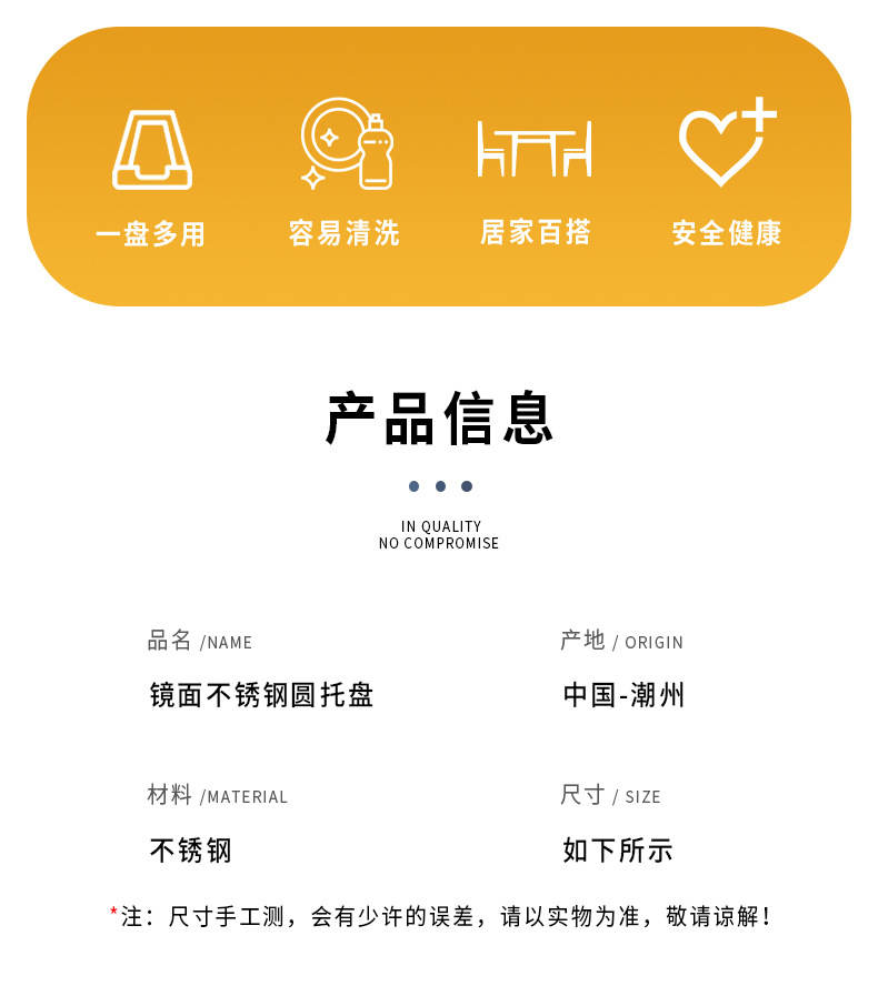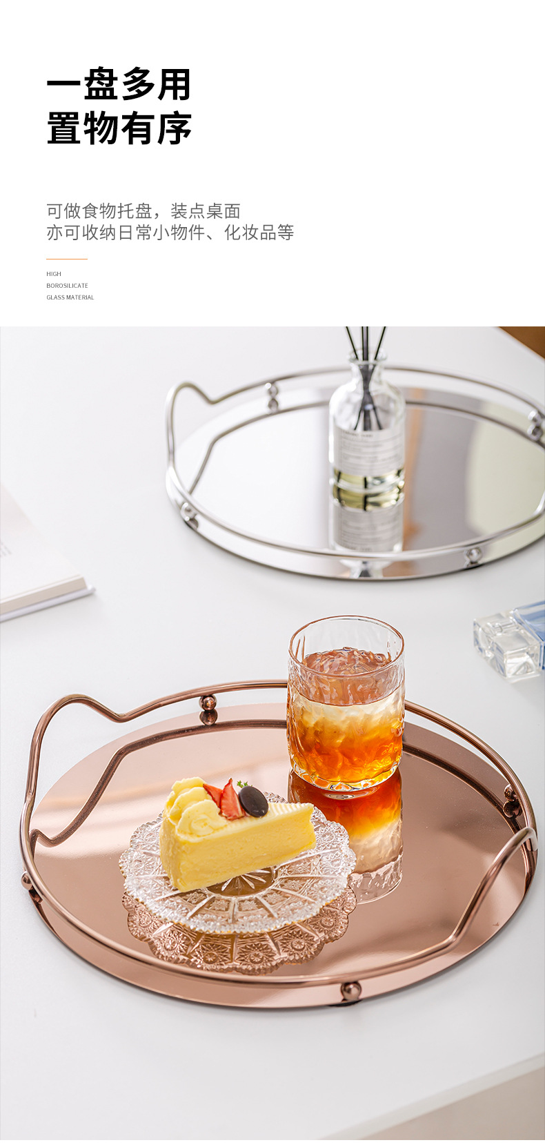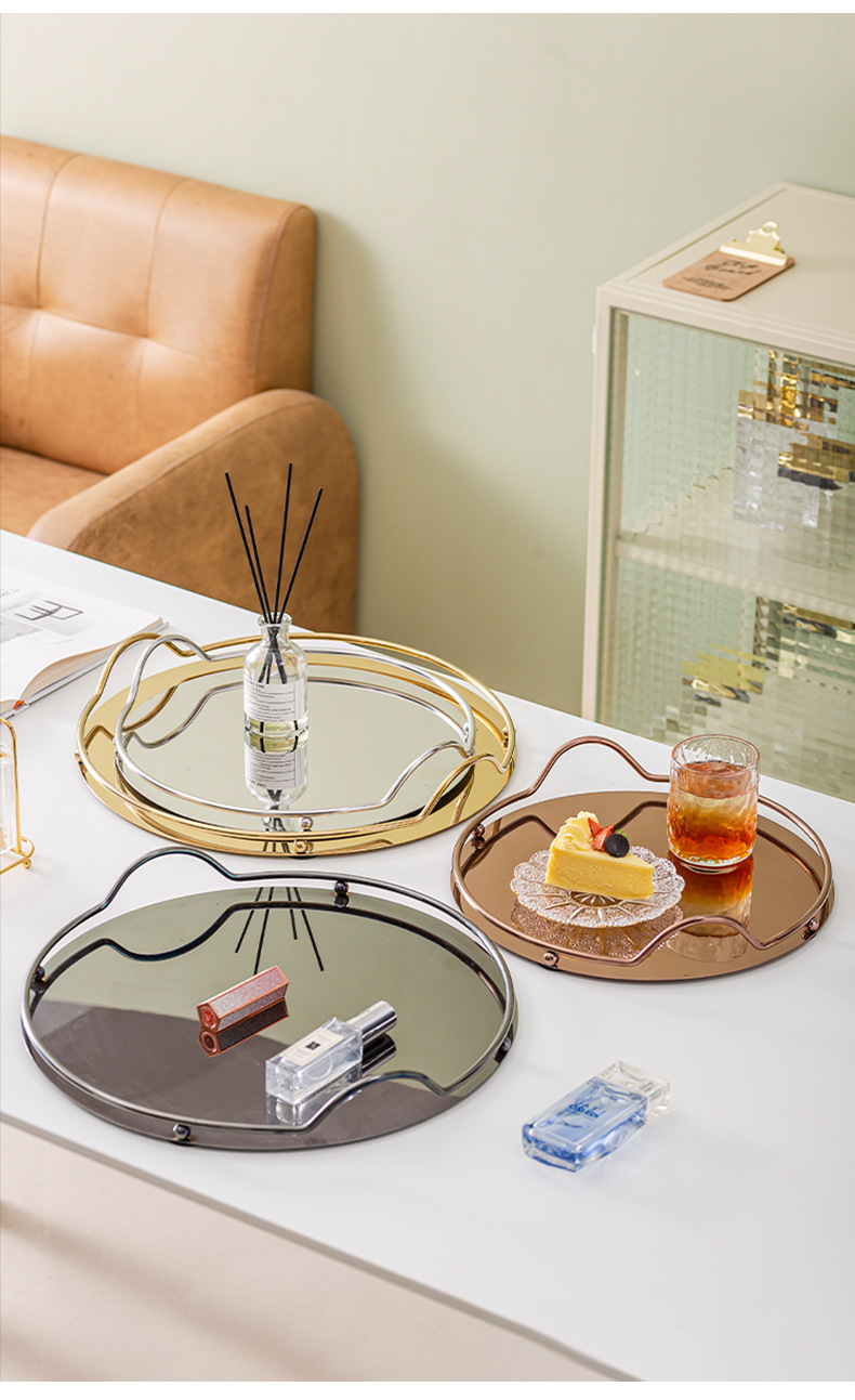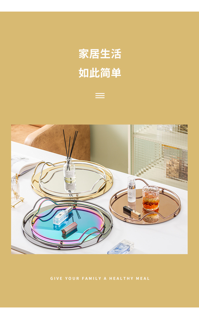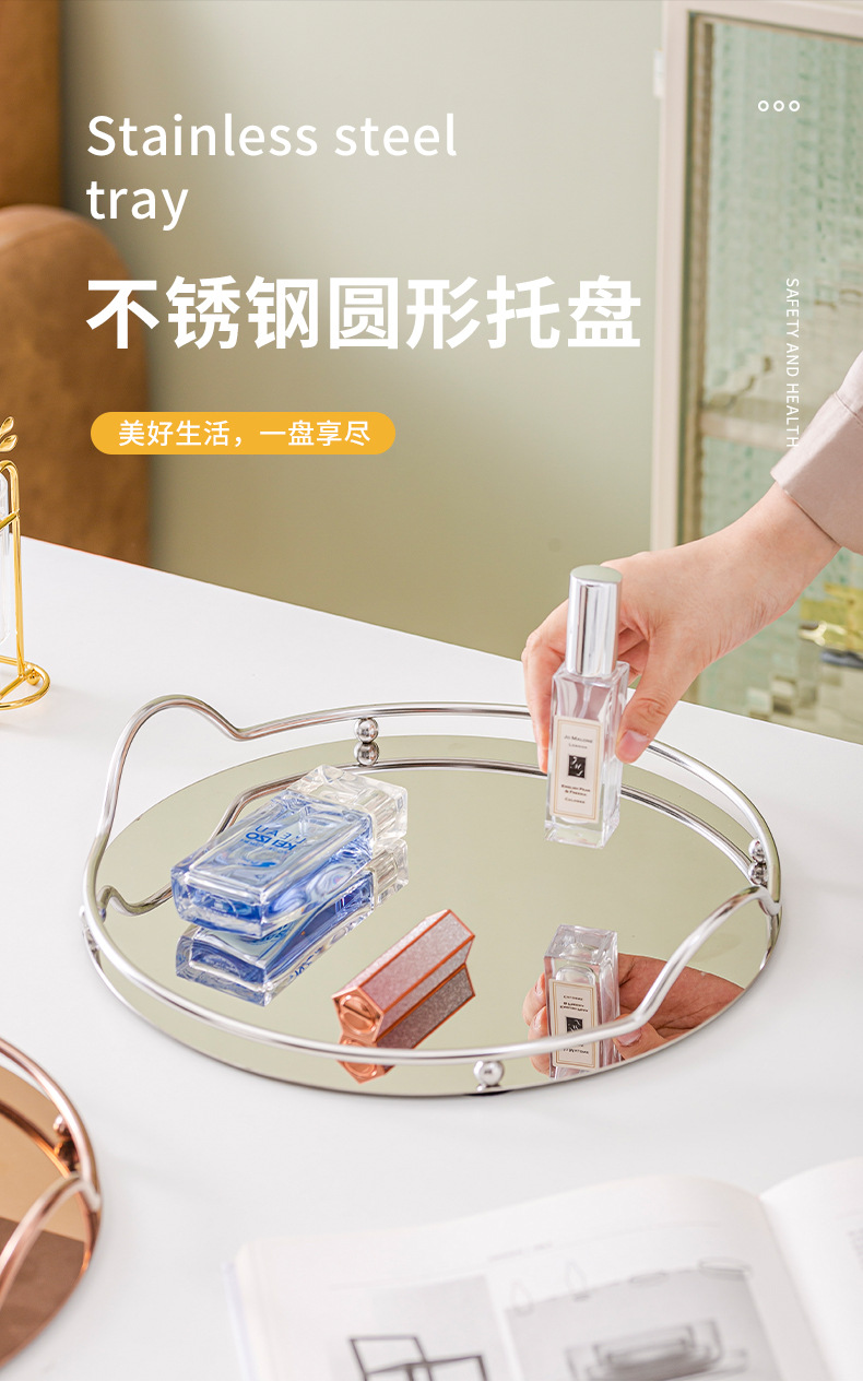 Ins 북유럽 스테인리스 거울 디스크 금속 트레이 보석 화장품 보관 거실 장식 트레이