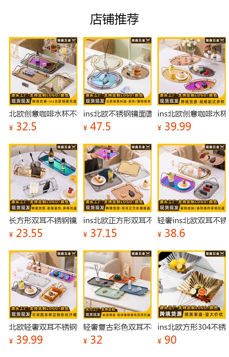 Ins 북유럽 스테인리스 거울 디스크 금속 트레이 보석 화장품 보관 거실 장식 트레이스토어 가기