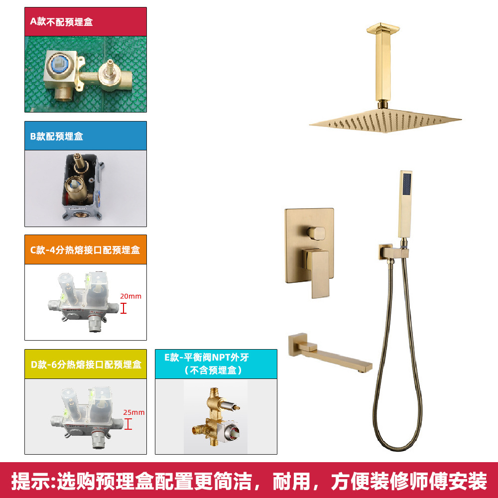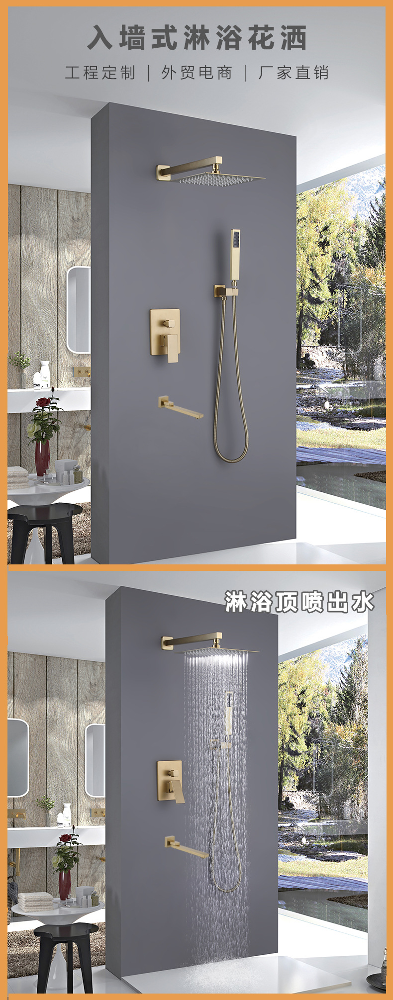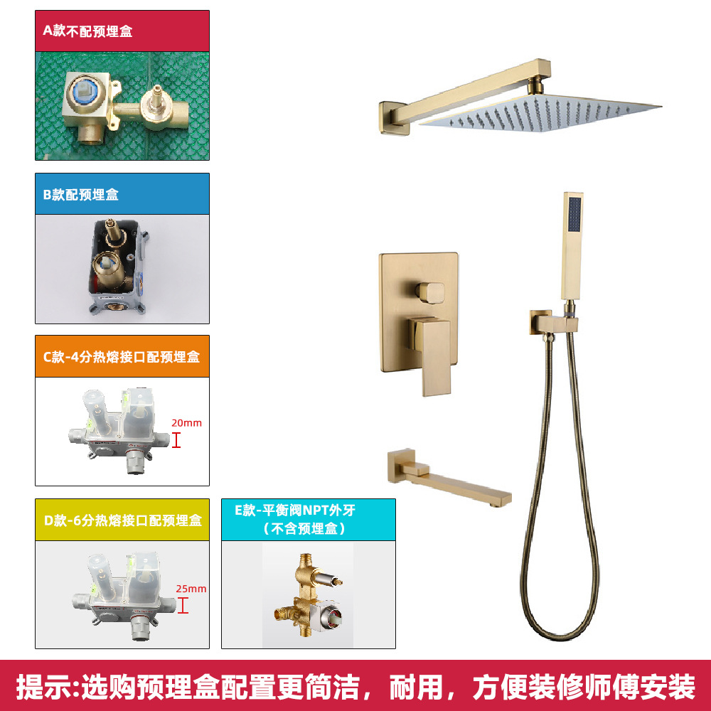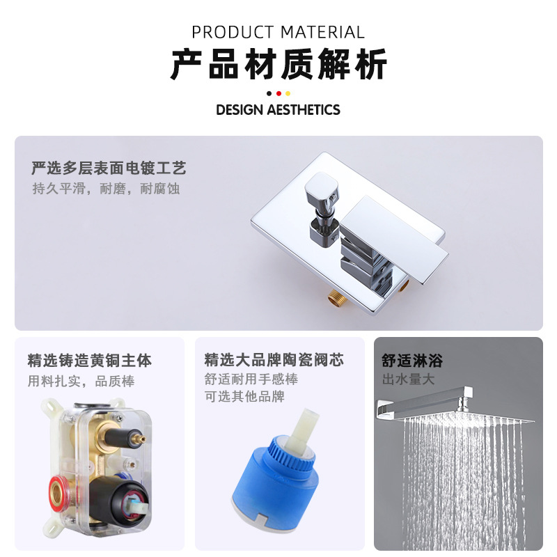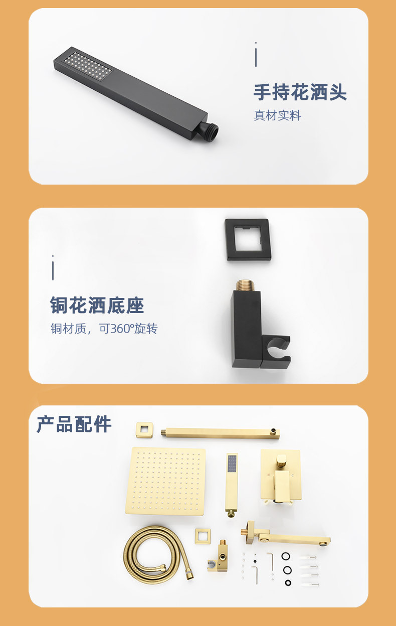 호주 표준 및 미국 표준 사각형 매립형 3기능 순동 호텔 벽걸이형 냉온 샤워기 세트 도매스토어 가기