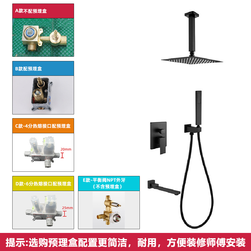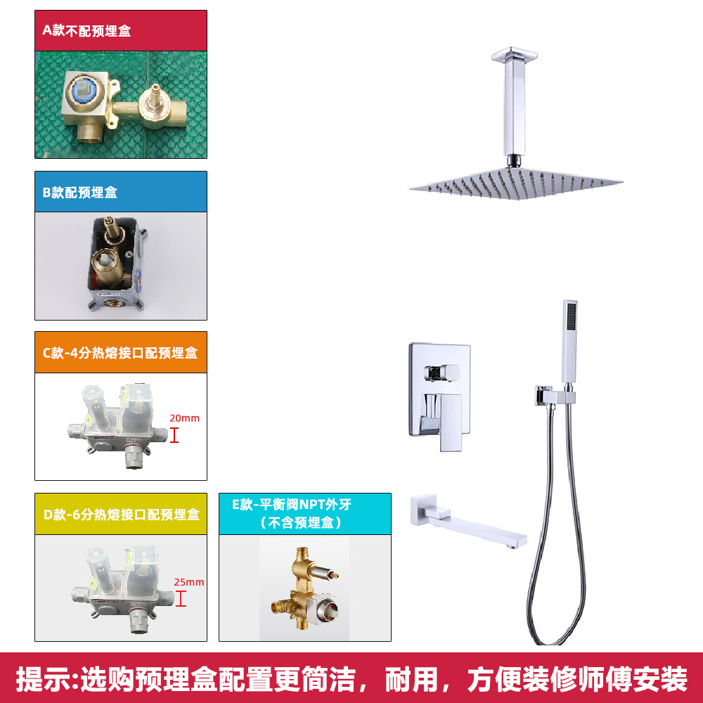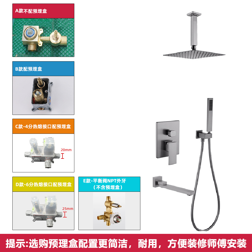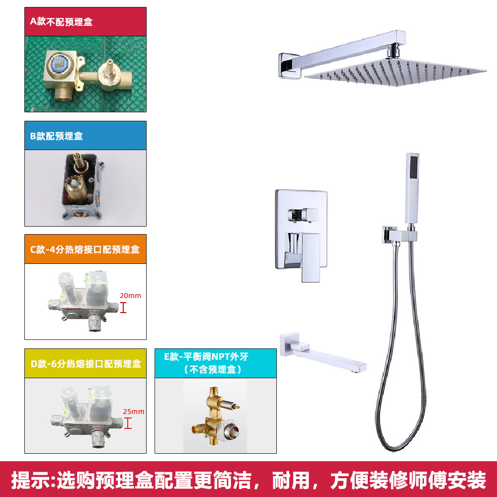 호주 표준 및 미국 표준 사각형 매립형 3기능 순동 호텔 벽걸이형 냉온 샤워기 세트 도매스토어 가기
